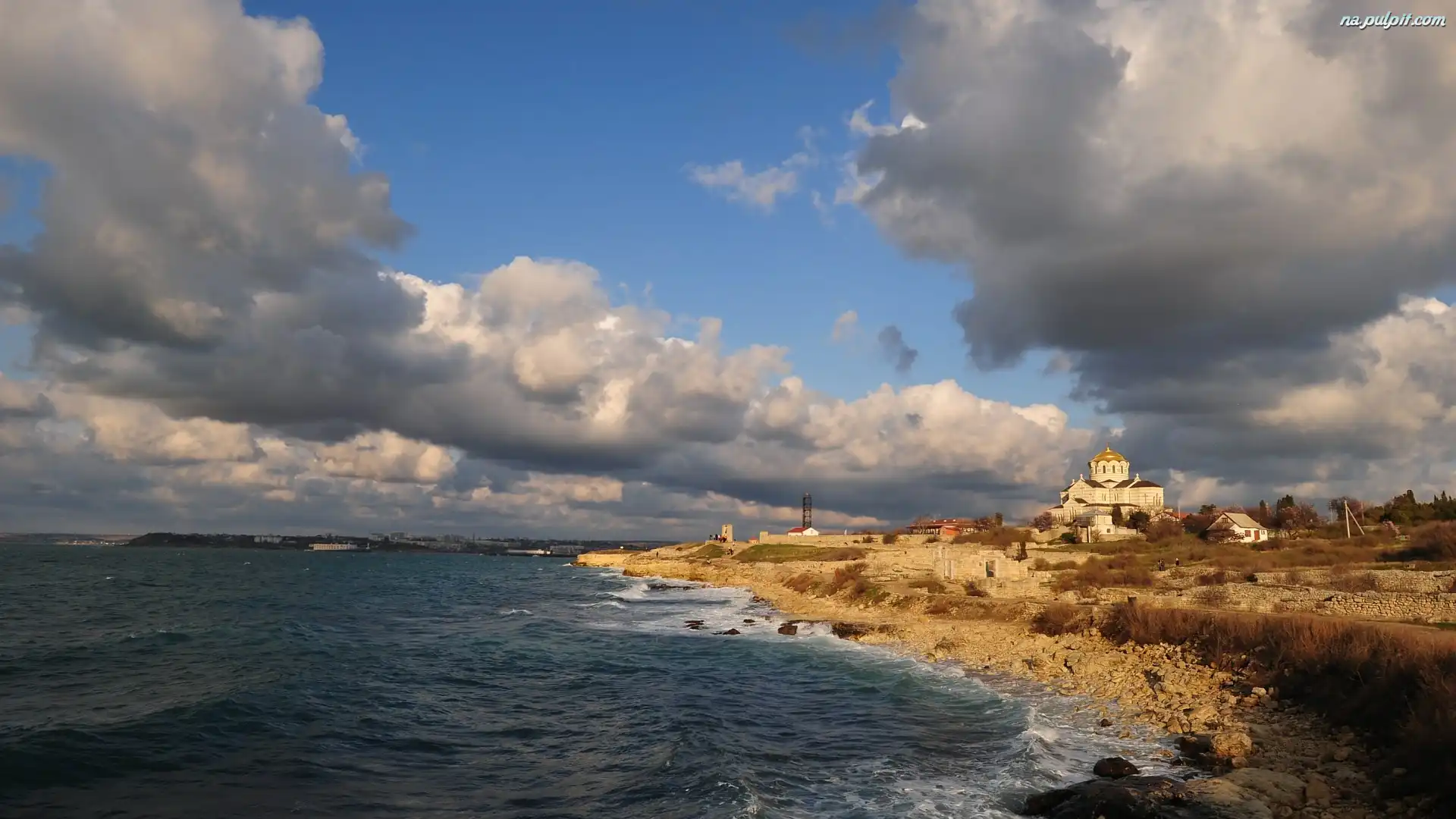 Krym, Chmury, Brzeg, Morze, Cerkiew