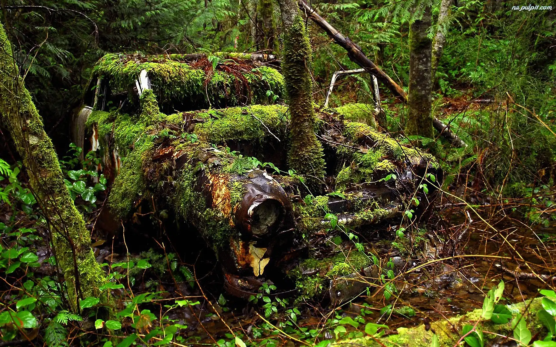 Zabytkowy, Drzewa, Mech, Samochód, Las, Rośliny Na Pulpit