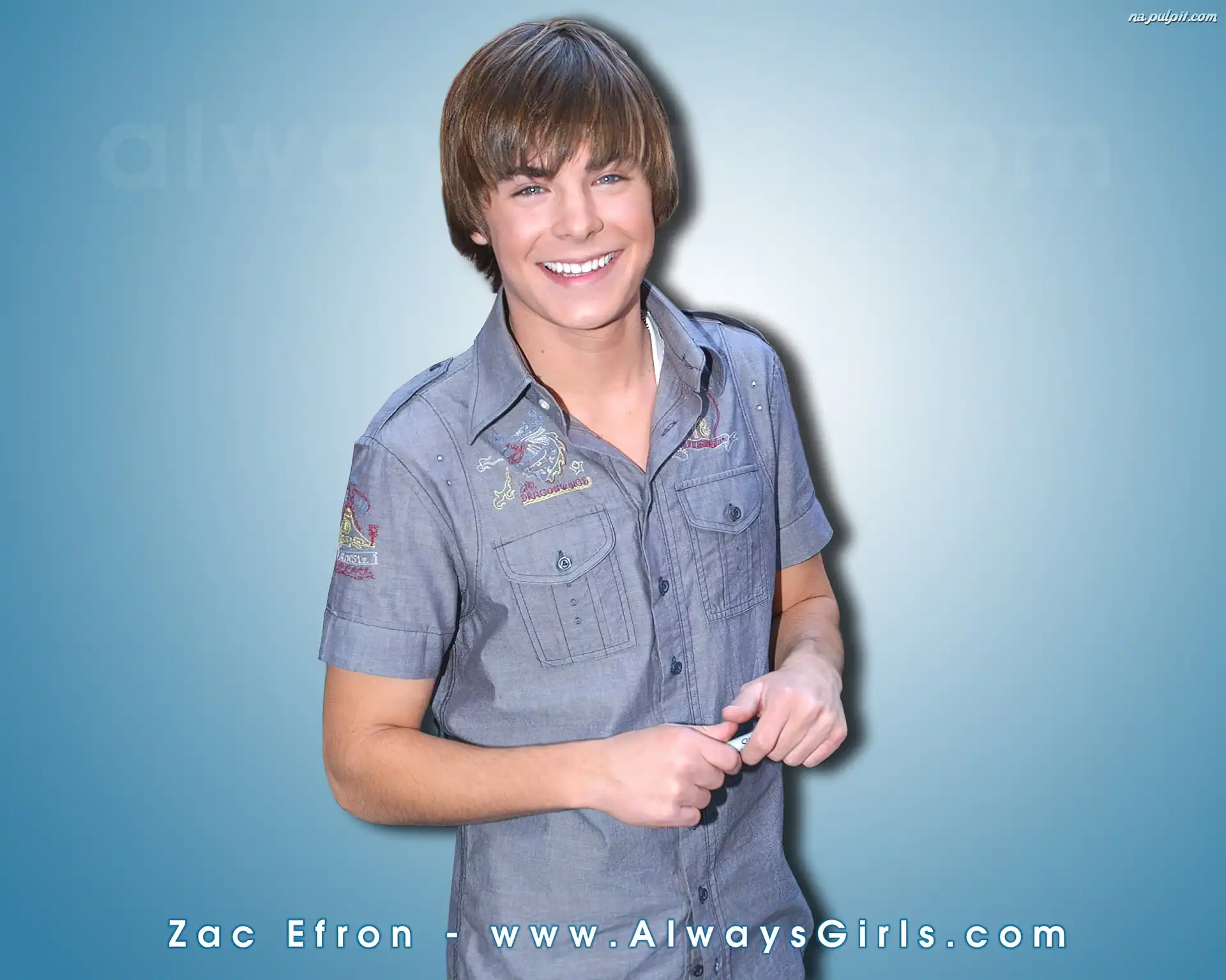Zac Efron, niebieska koszula Na Pulpit