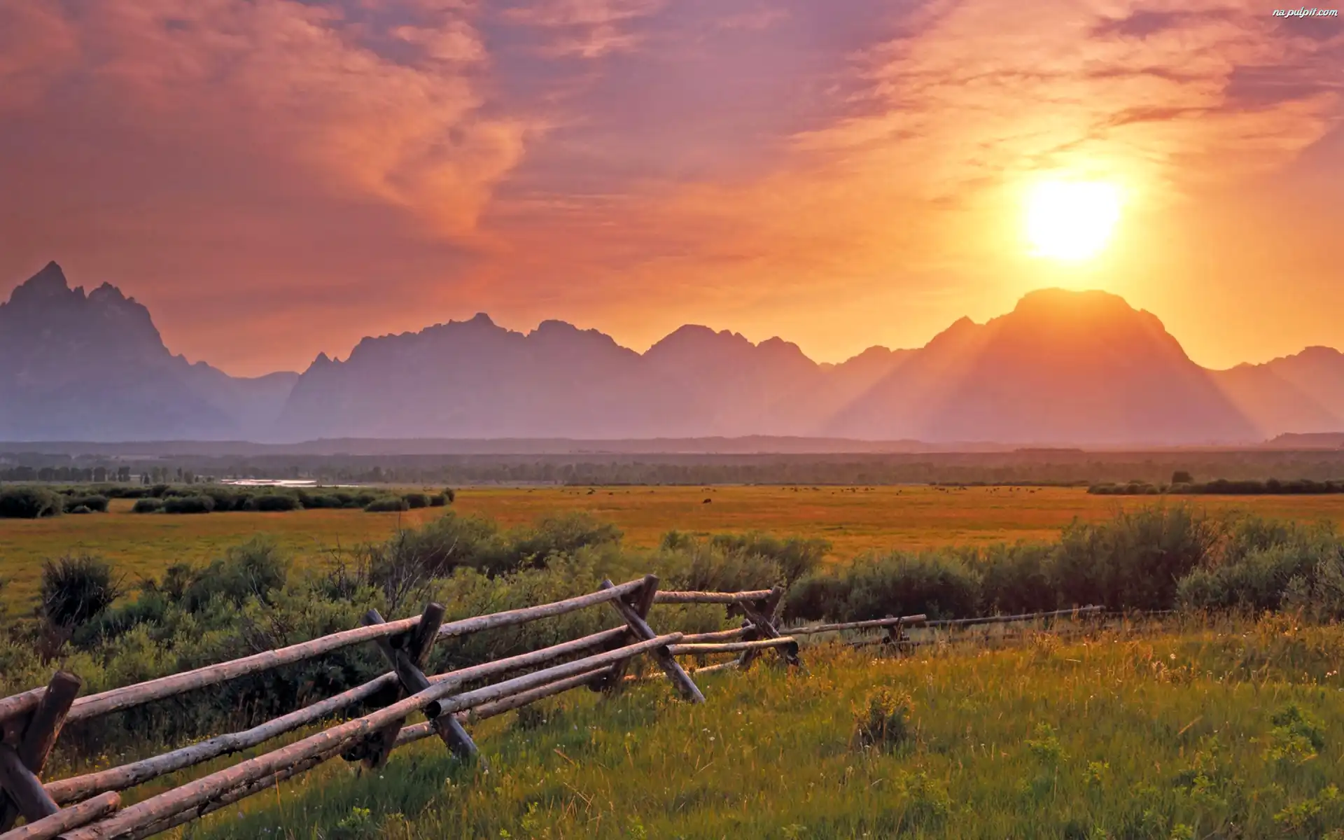 Zachód Słońca, Płotek, Łąka, Góry