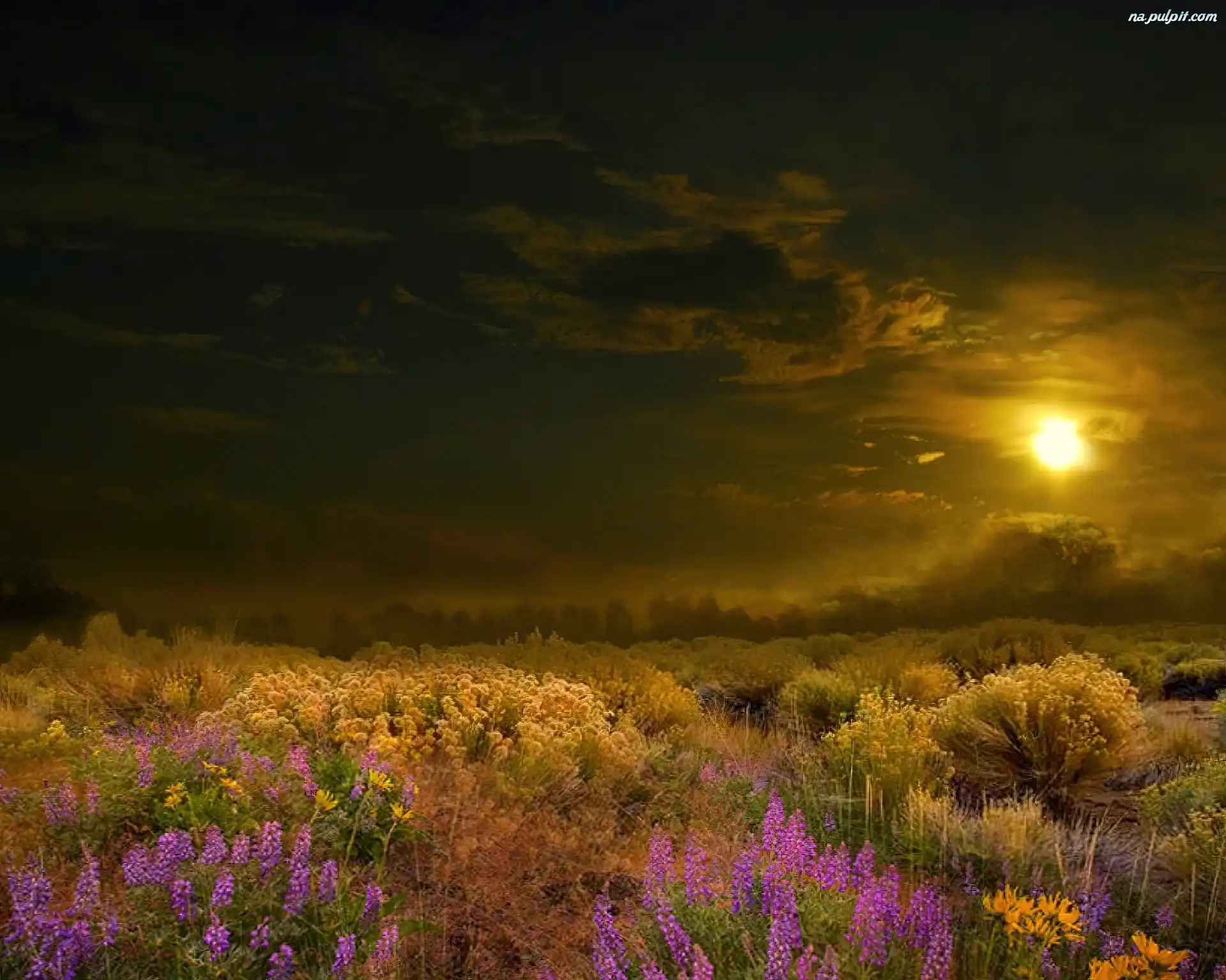 Łąka, Zachód, Słońca