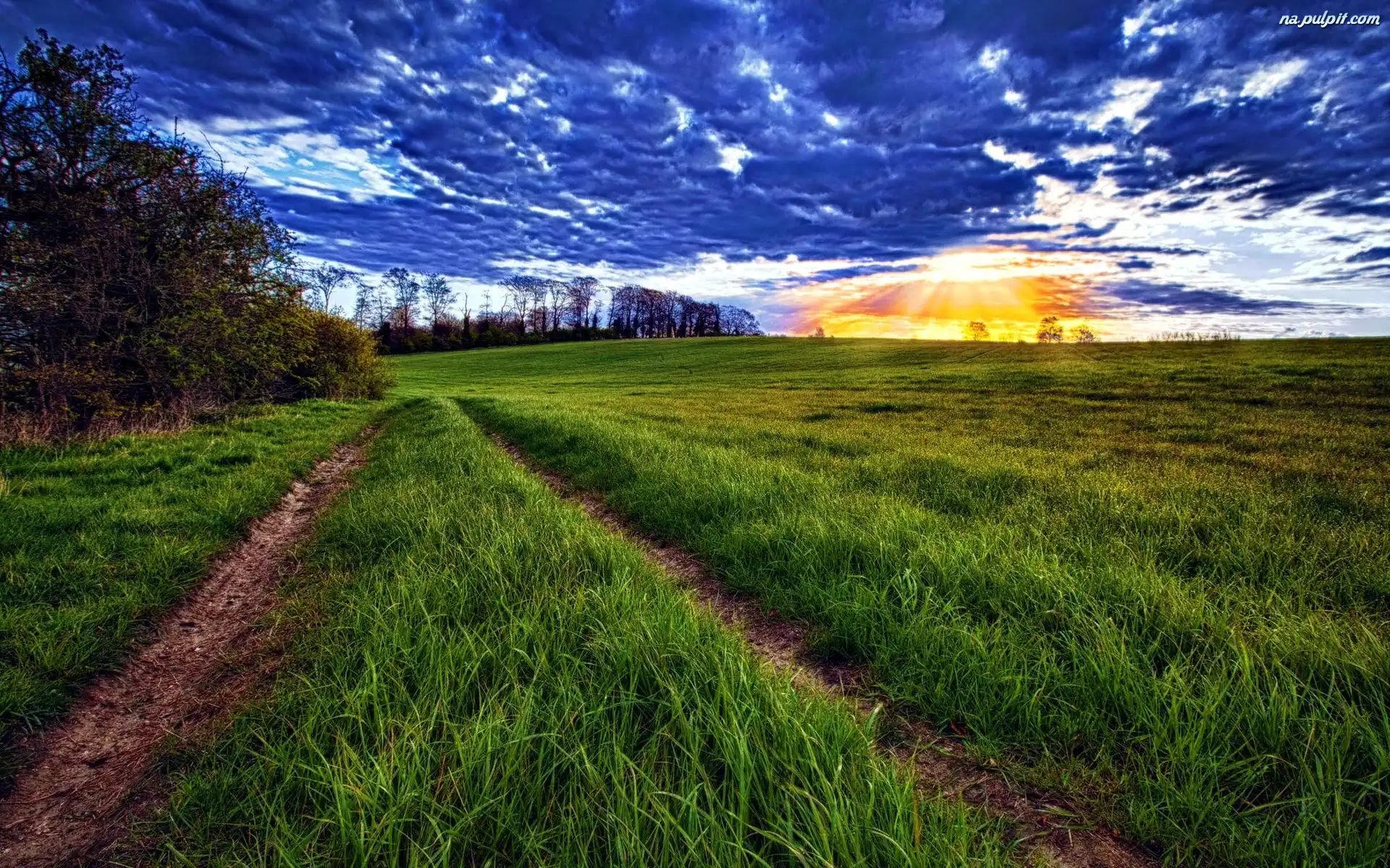 Zachód Słońca, Łąka, Chmury Na Pulpit