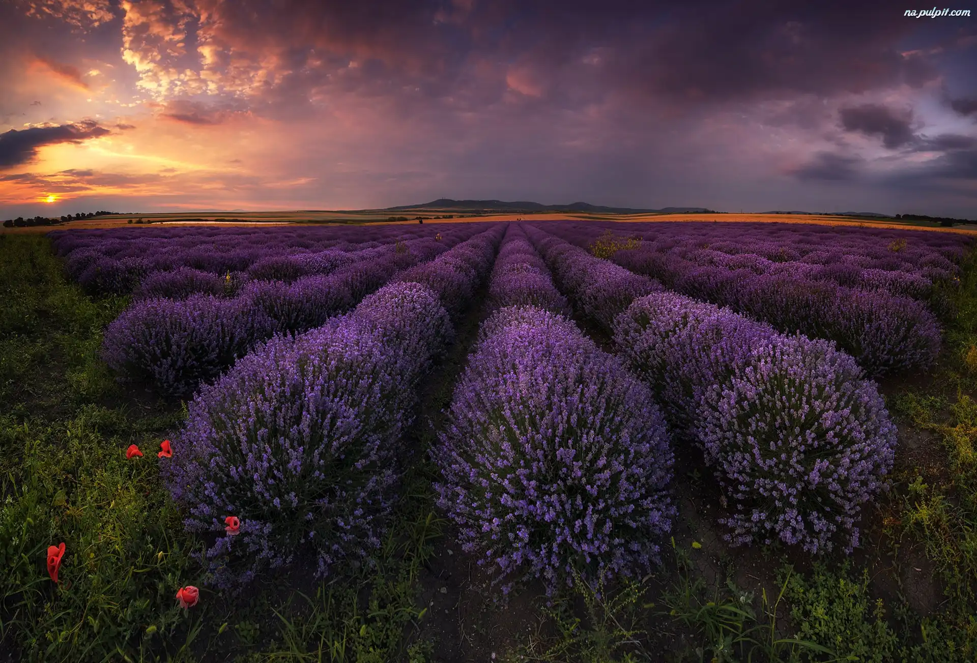 Zachód słońca, Pole, Bułgaria, Lawenda Na Pulpit