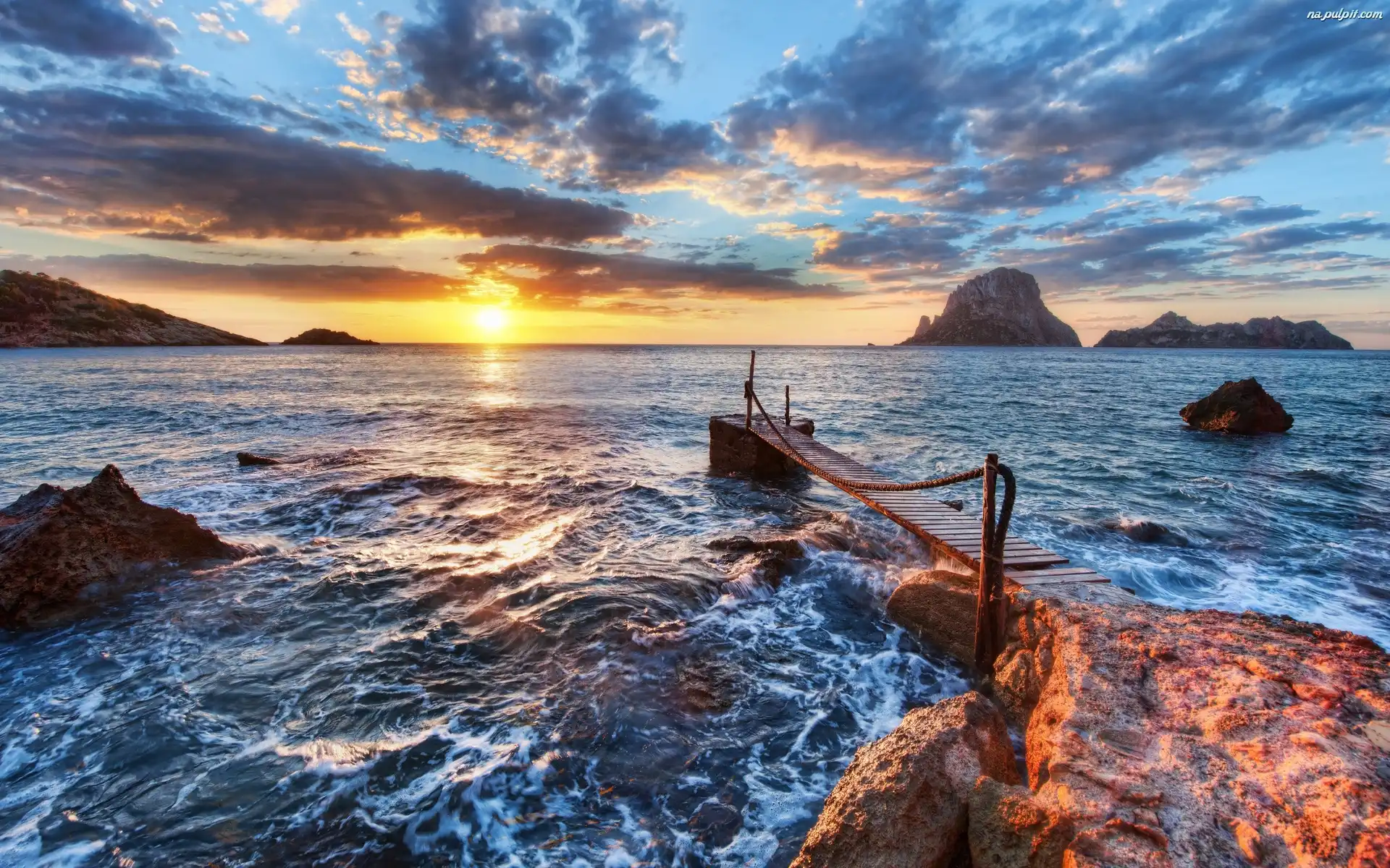 Zachód, Skały, Molo, Słonca, Chmury, Morze Na Pulpit