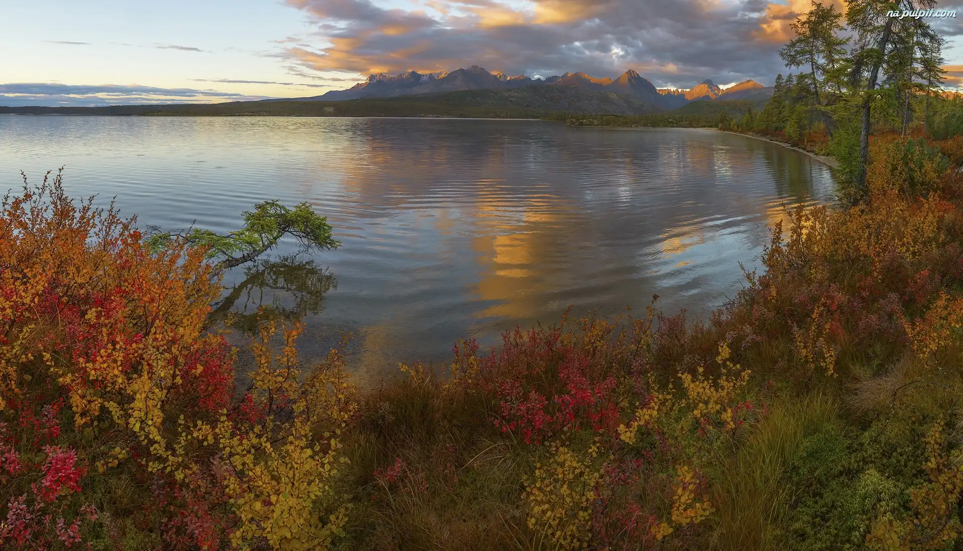 Drzewa, Obwód magadański, Kołyma, Roślinność, Zachód słońca, Jezioro Jack London, Rosja, Góry Na Pulpit |