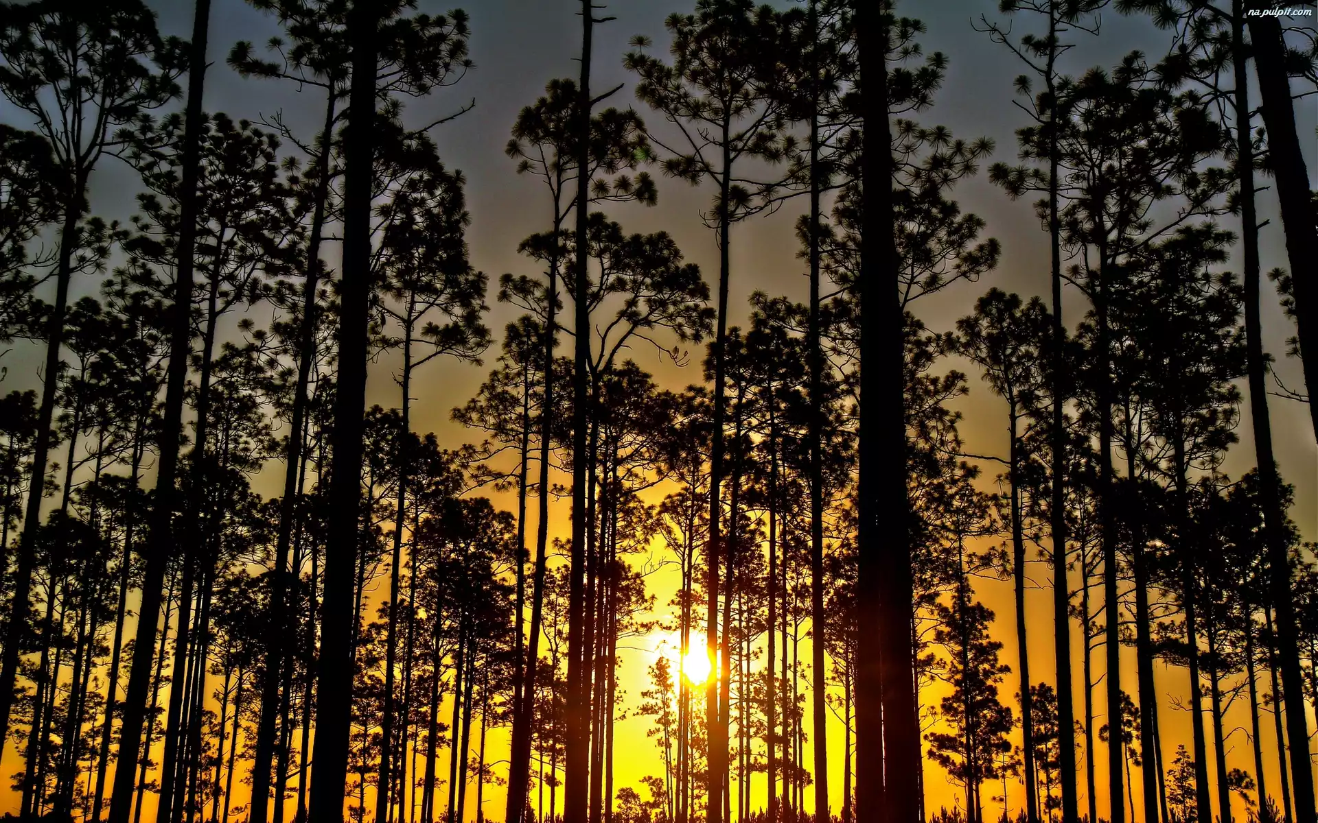 Drzewa, Zachód, Słońca