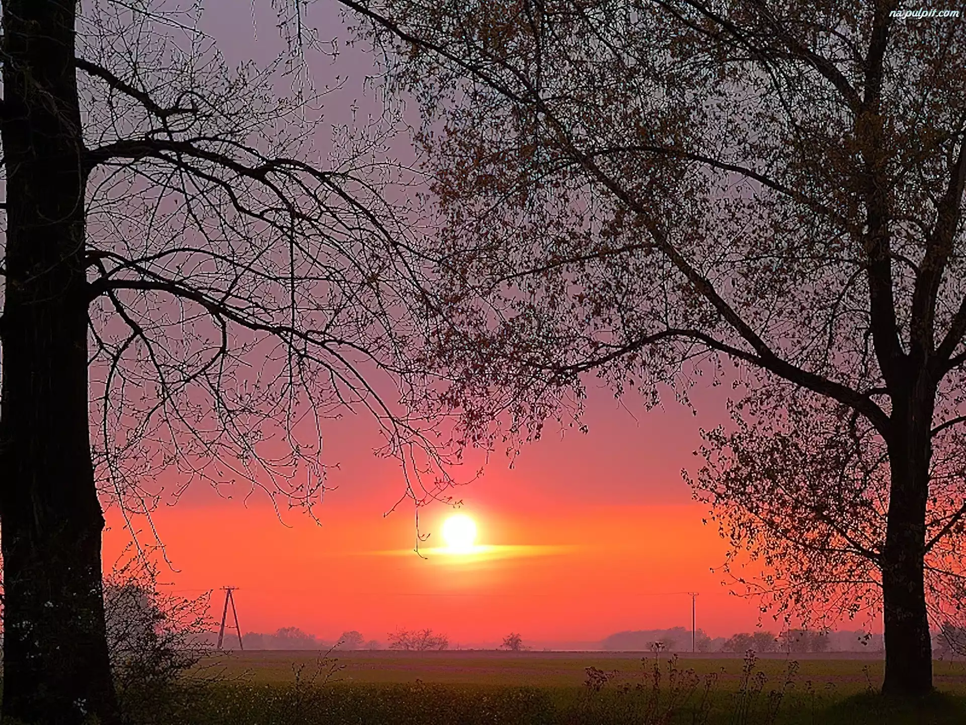 Drzewa, Zachód, Słońca Na Pulpit