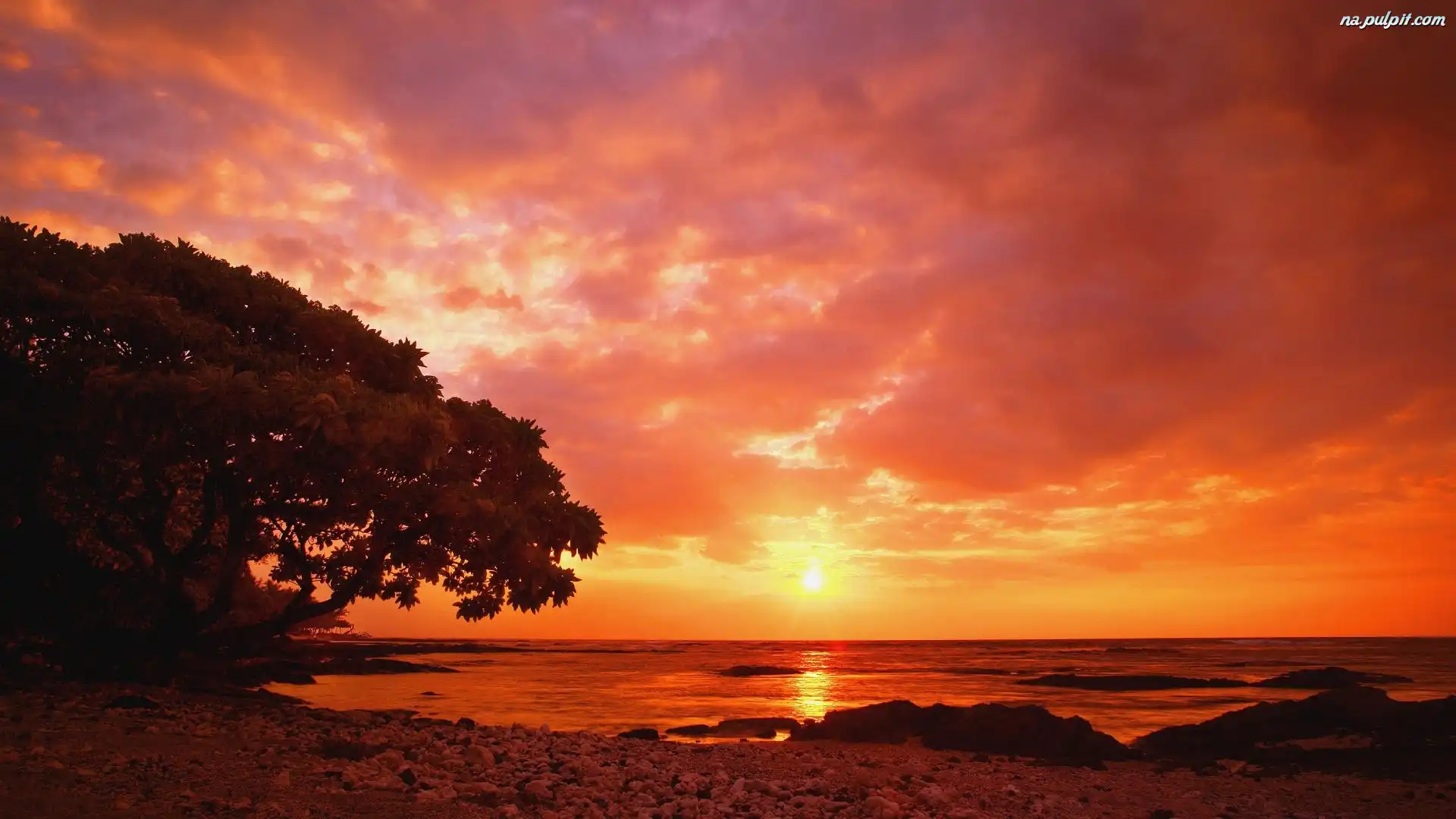 Zachód Słońca, Drzewo, Morze Na Pulpit