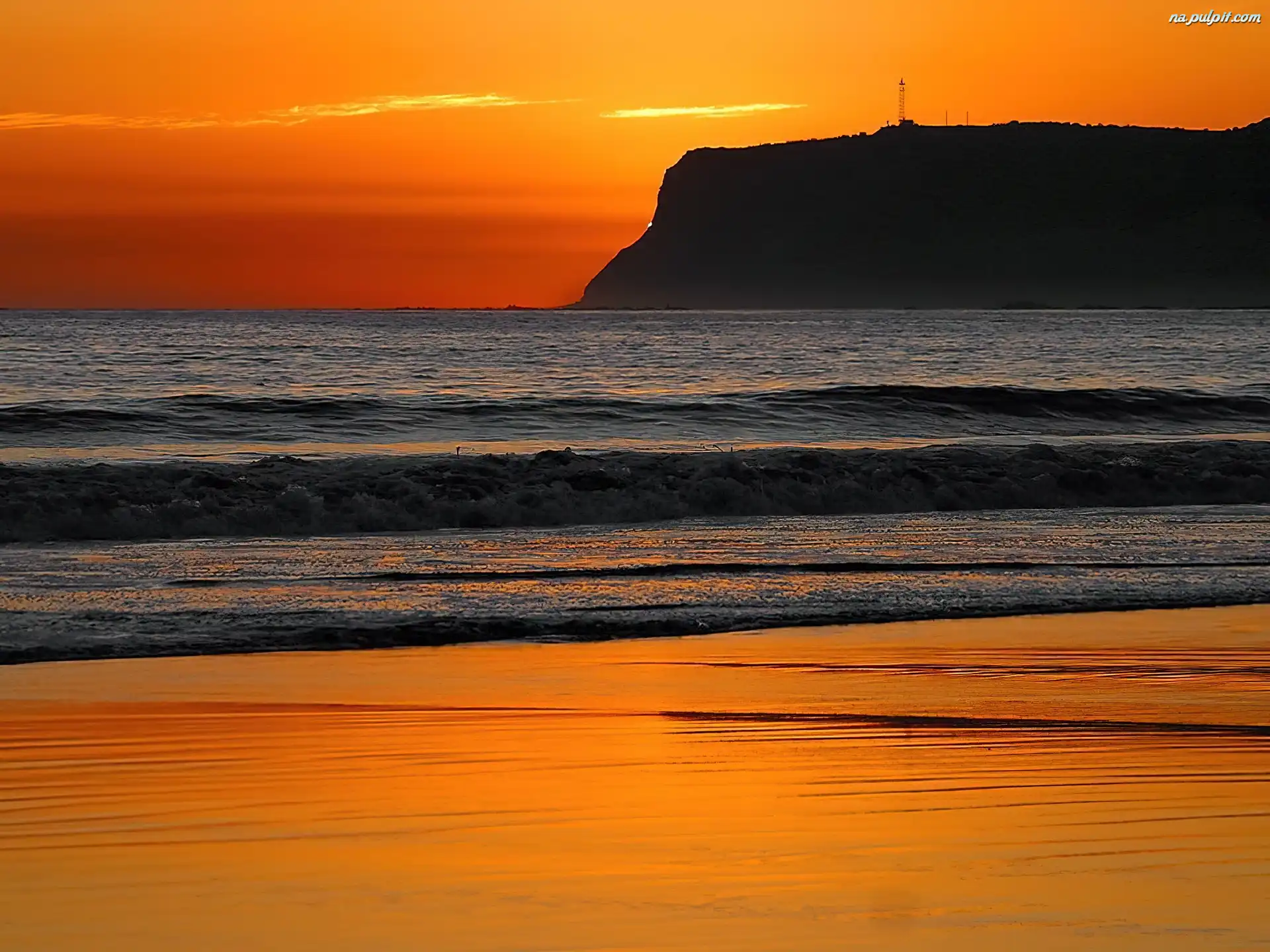 Zachód Słońca, Fale, Plaża Na Pulpit