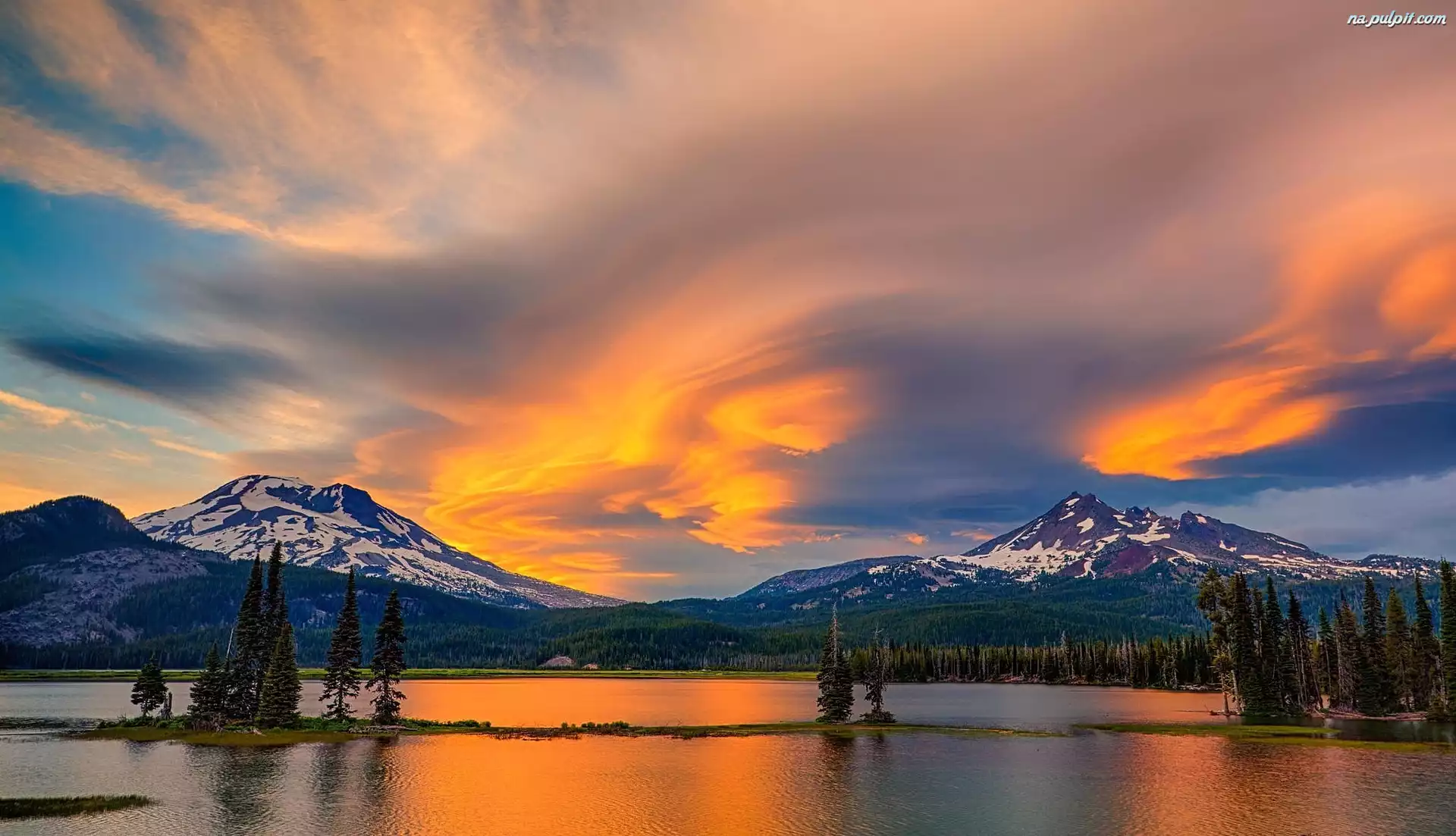 Zachód Słońca, Lasy, Góry, Jezioro Na Pulpit