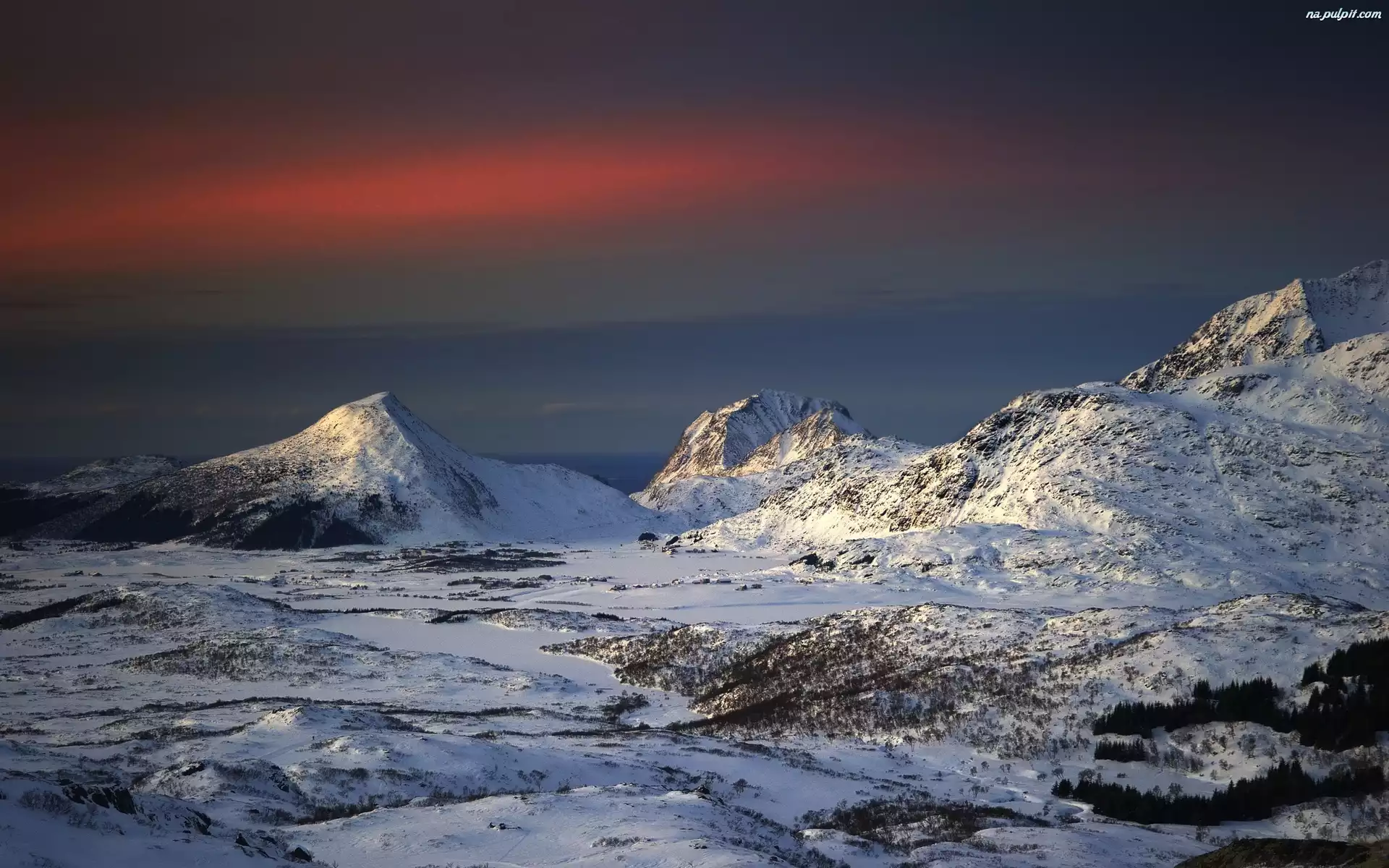Zachód, Pokryte, Góry, Śniegiem Na Pulpit