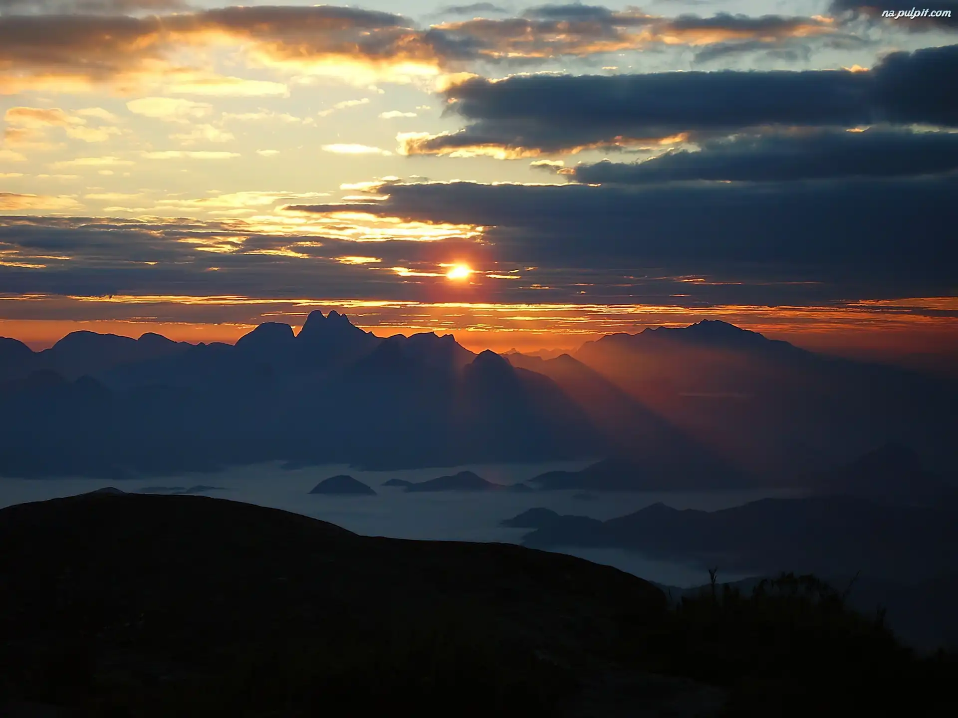 Góry, Zachód, Słońca Na Pulpit