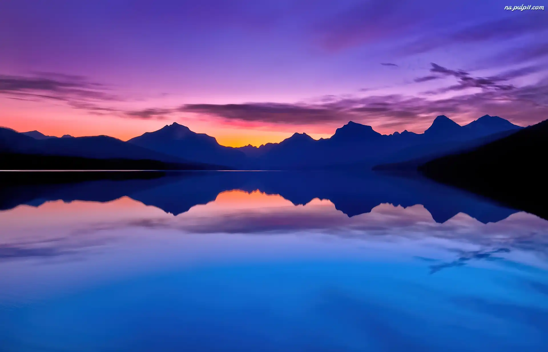 Zachód słońca, Góry, Jezioro Na Pulpit