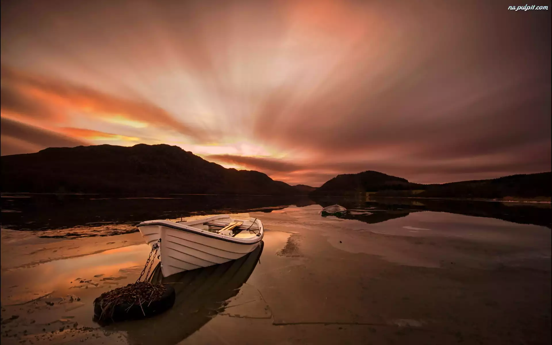 Łódź, Góry, Słońca, Zachód, Jezioro Na Pulpit