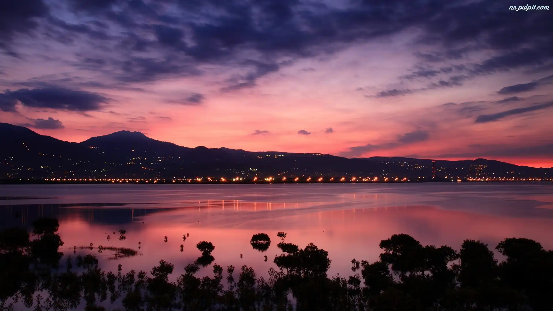 Światła, Góry, Słońca, Zachód, Jezioro
