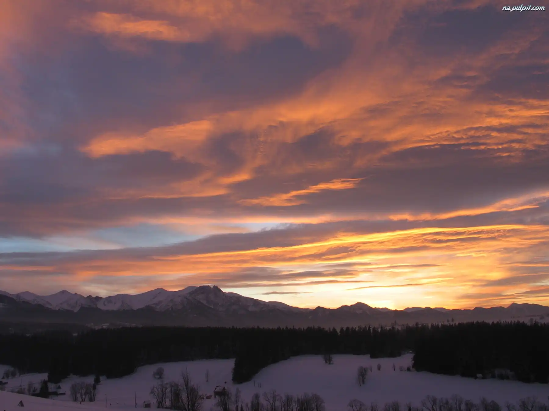 Zachód słońca, Zima, Góry, Niebo Na Pulpit