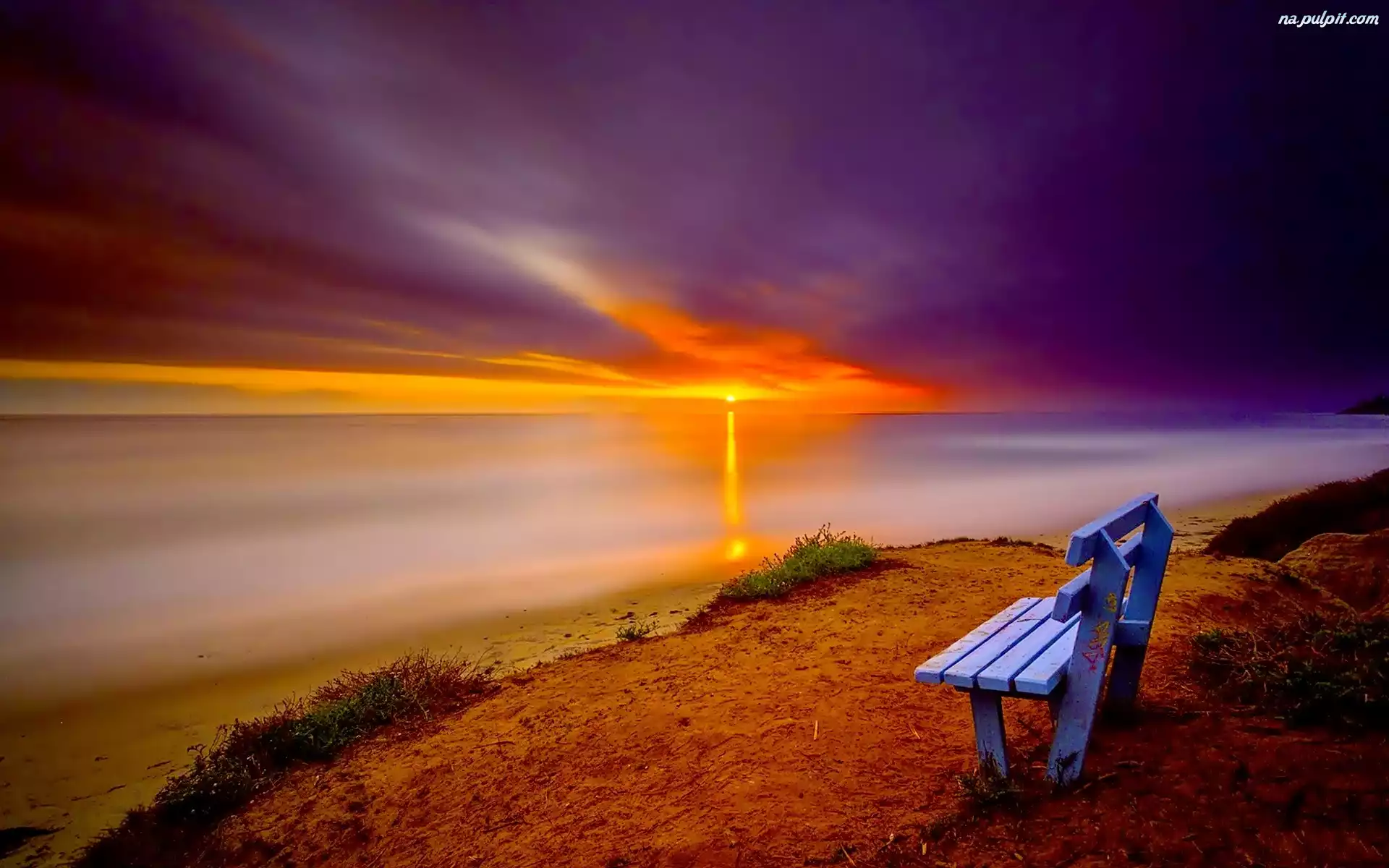 Ławka, Jezioro, Zachód Słońca Na Pulpit