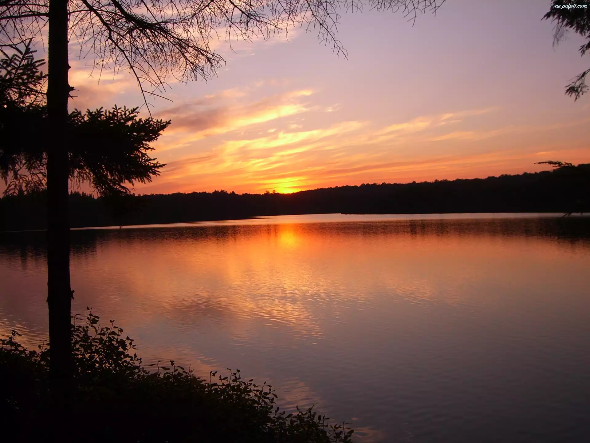 Zachód Słońca, Jezioro, Drzewo Na Pulpit