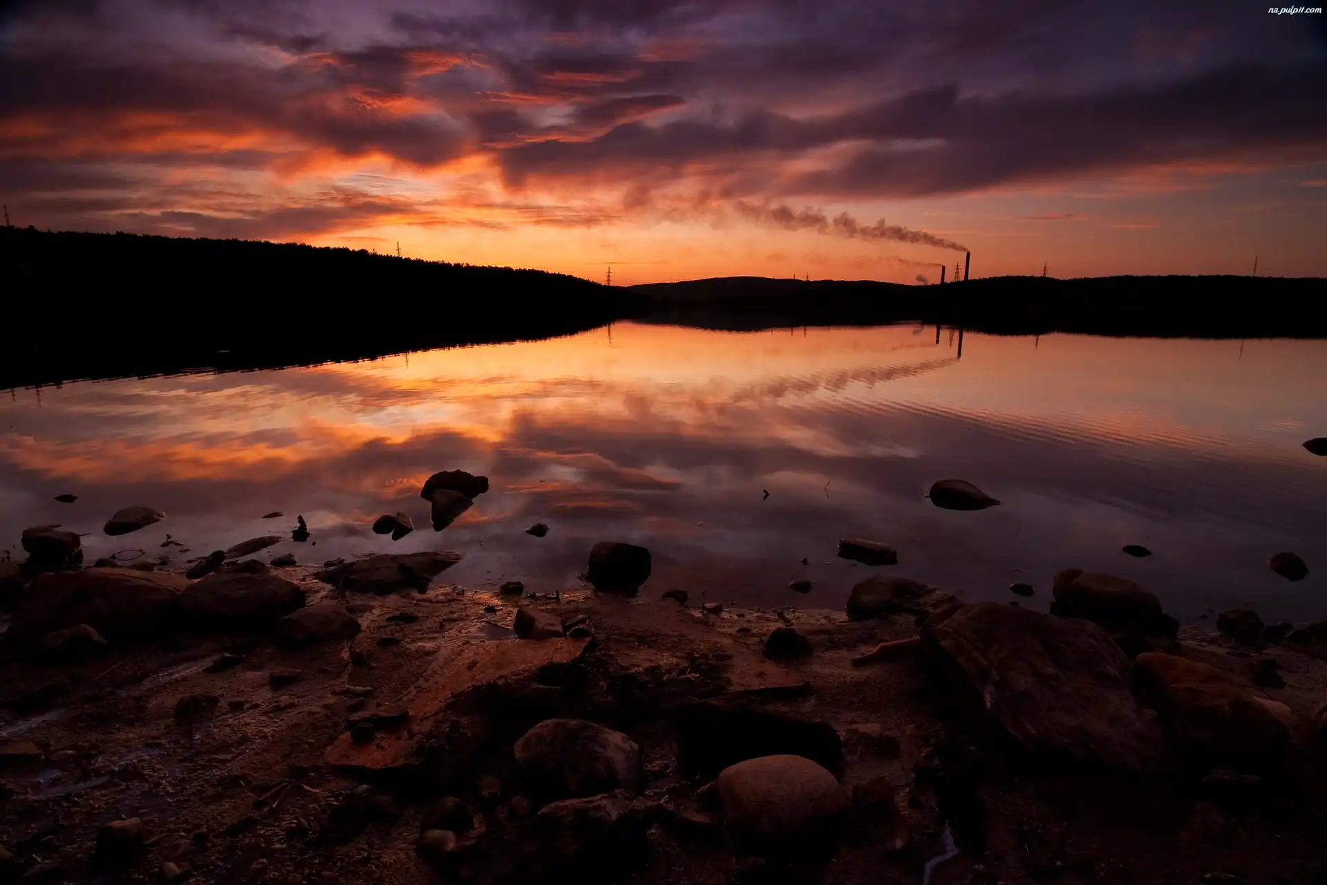 Zachód Słońca, Jezioro, Kamienie Na Pulpit