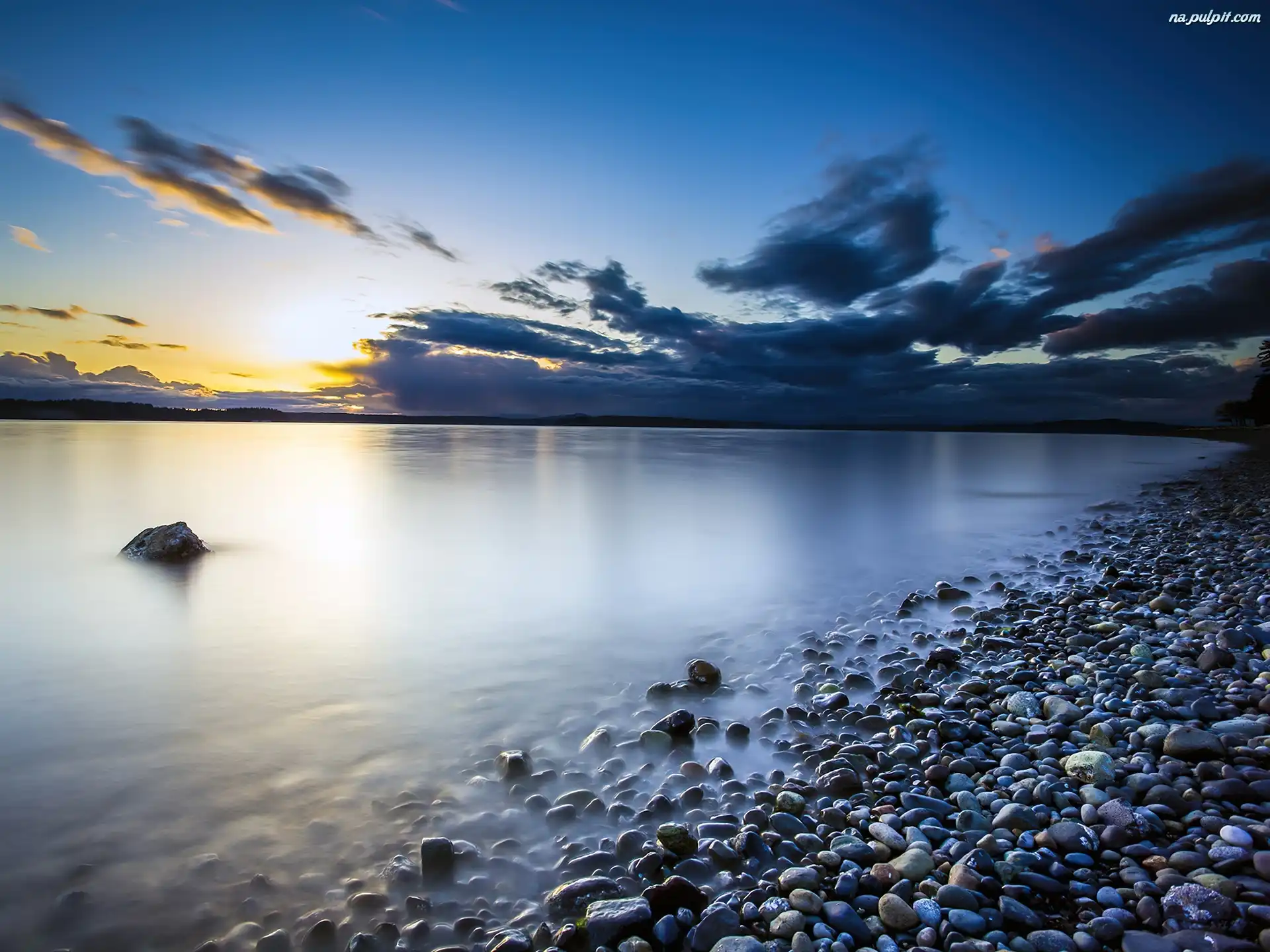 Zachód Słońca, Jezioro, Kamyczki Na Pulpit