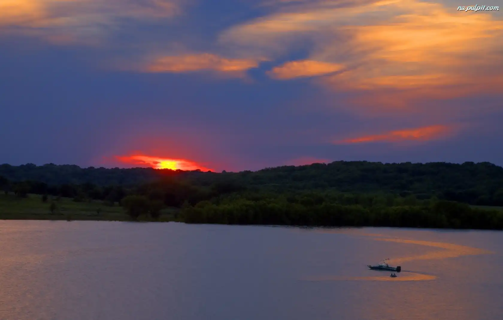Zachód Słońca, Jezioro, Lasy Na Pulpit
