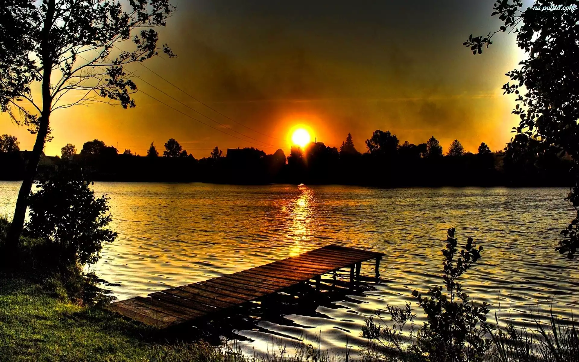 Zachód Słońca, Jezioro, Pomost Na Pulpit