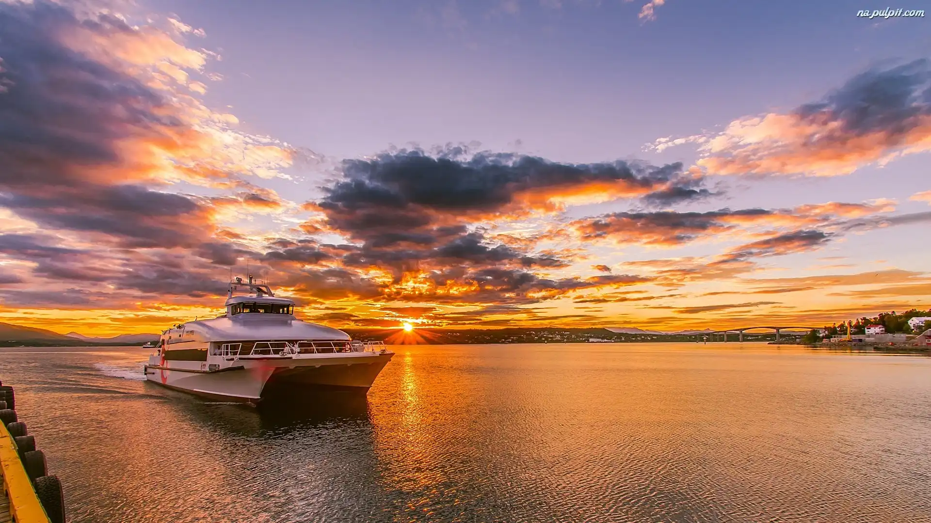 Zachód Słońca, Katamaran, Morze Na Pulpit