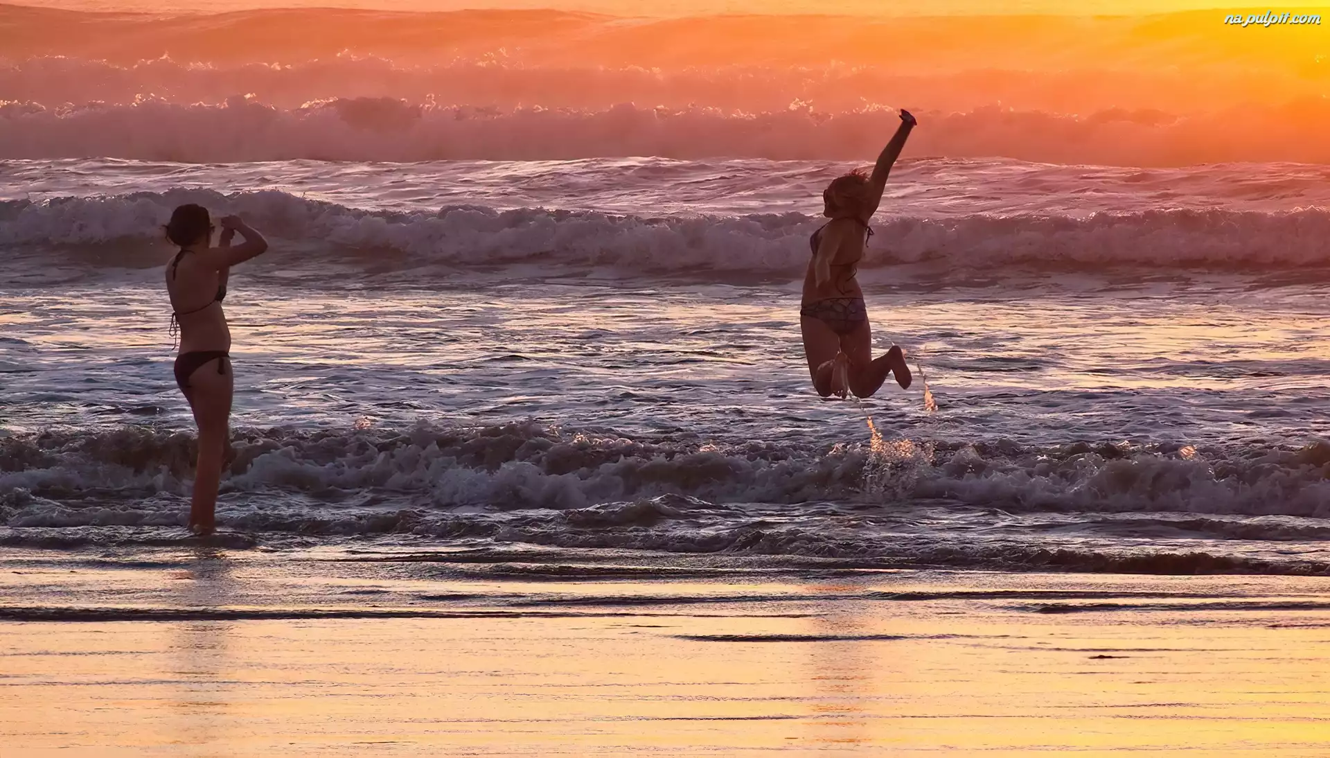 Zachód Słońca, Kobiety, Morze Na Pulpit