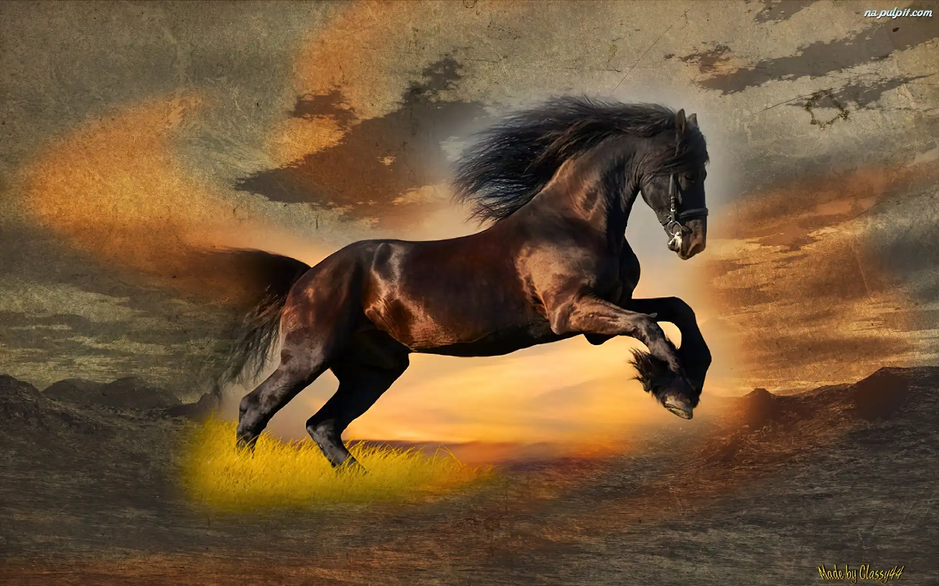 Koń, Zachód, Słońca Na Pulpit