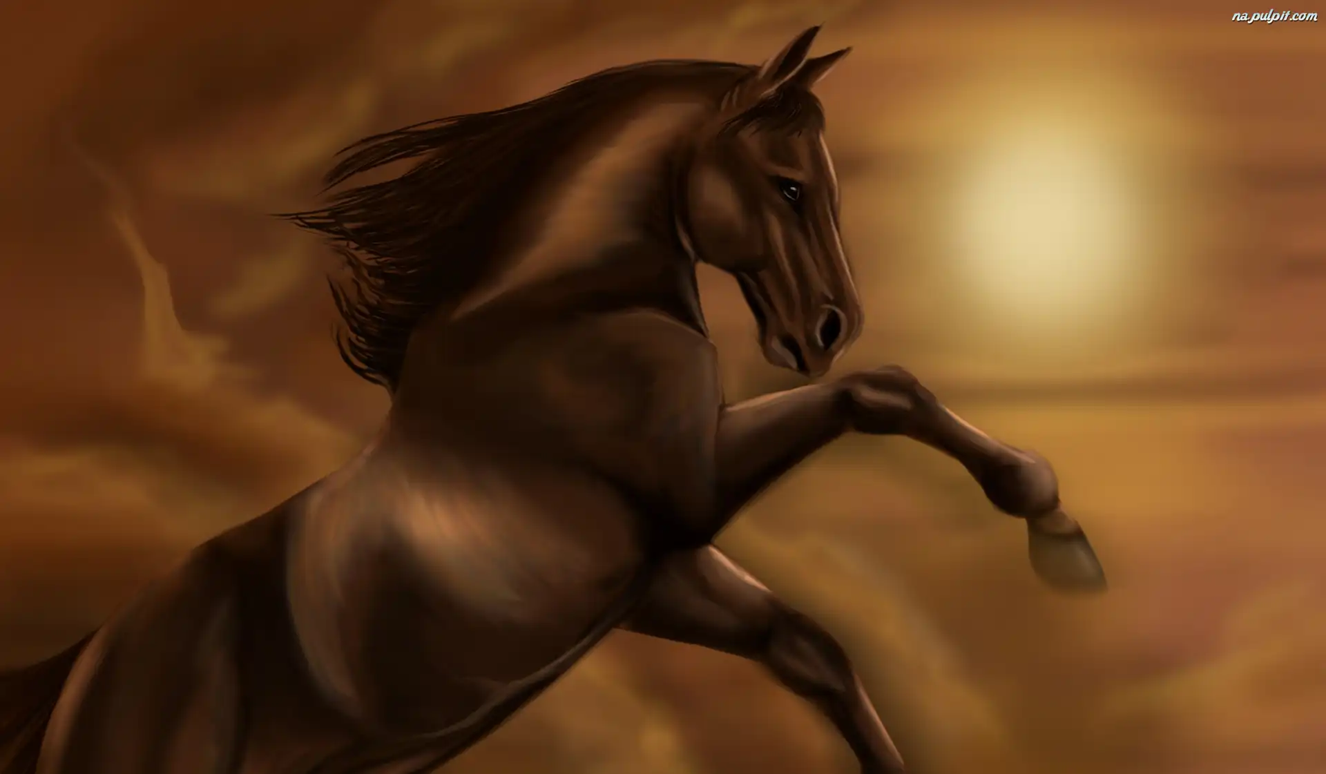 Koń, Zachód, Słońca Na Pulpit