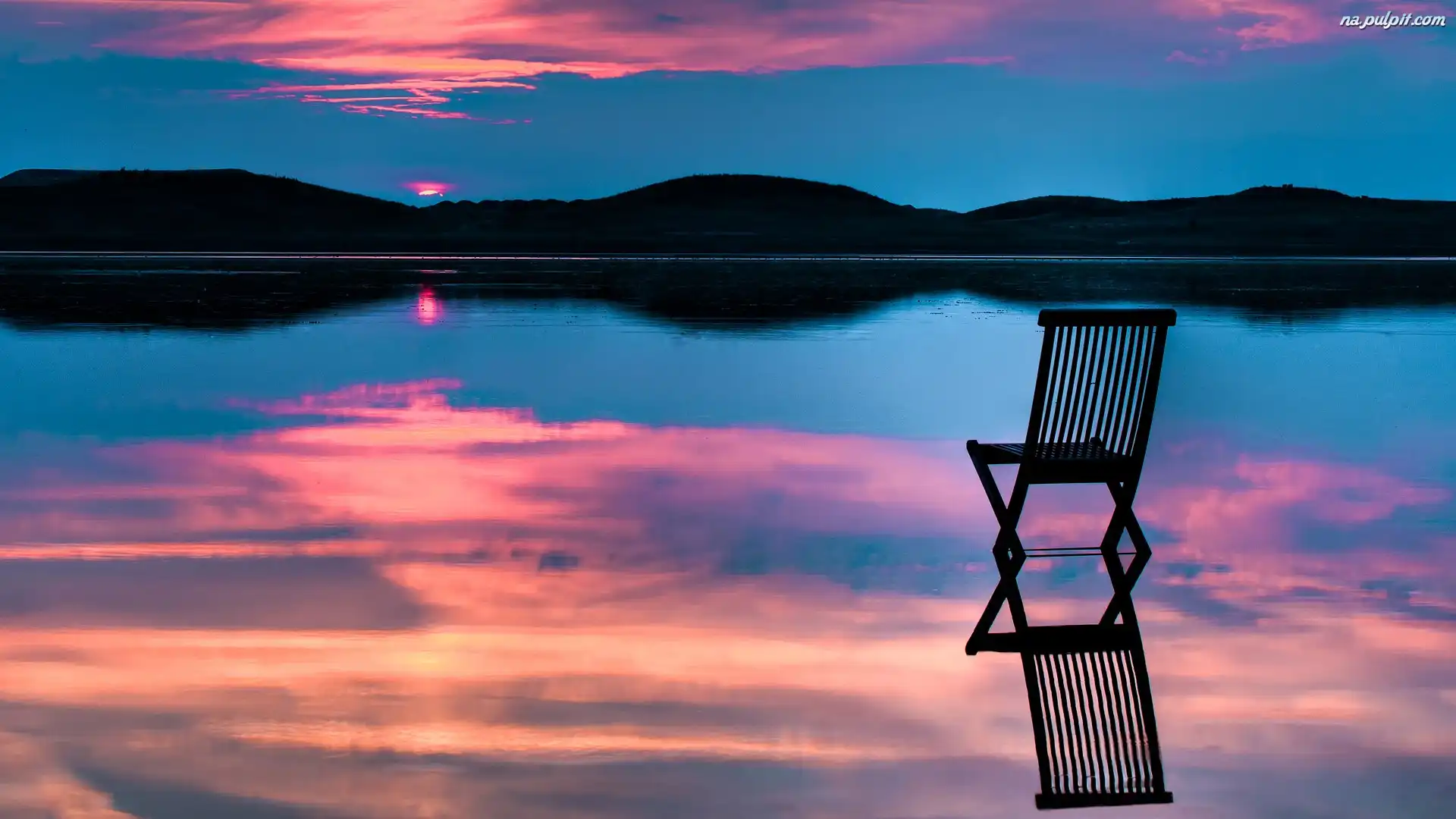 Zachód Słonca, Krzesło, Jezioro Na Pulpit