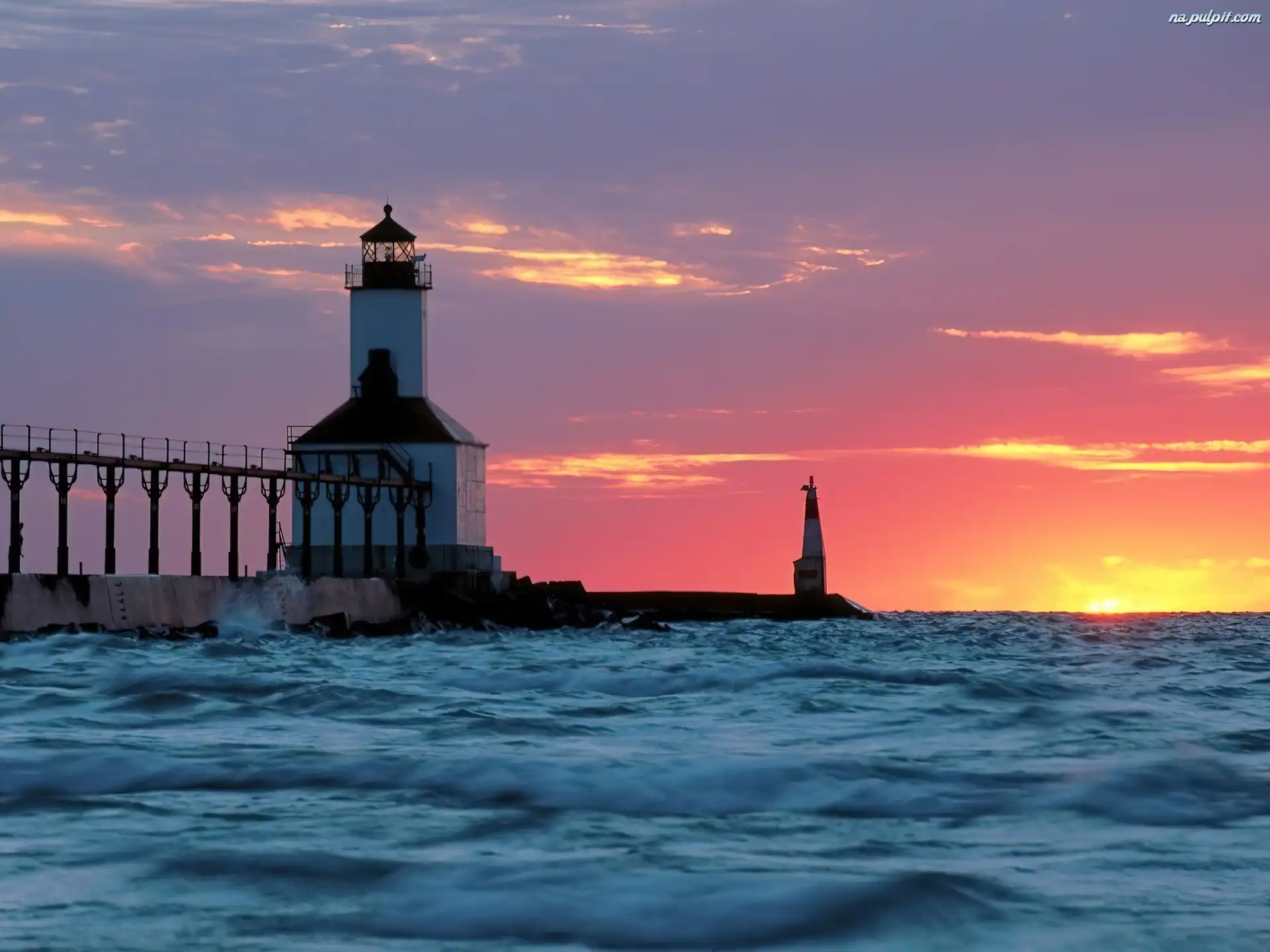 Zachód Słońca, Latarnia morska, Fale Na Pulpit