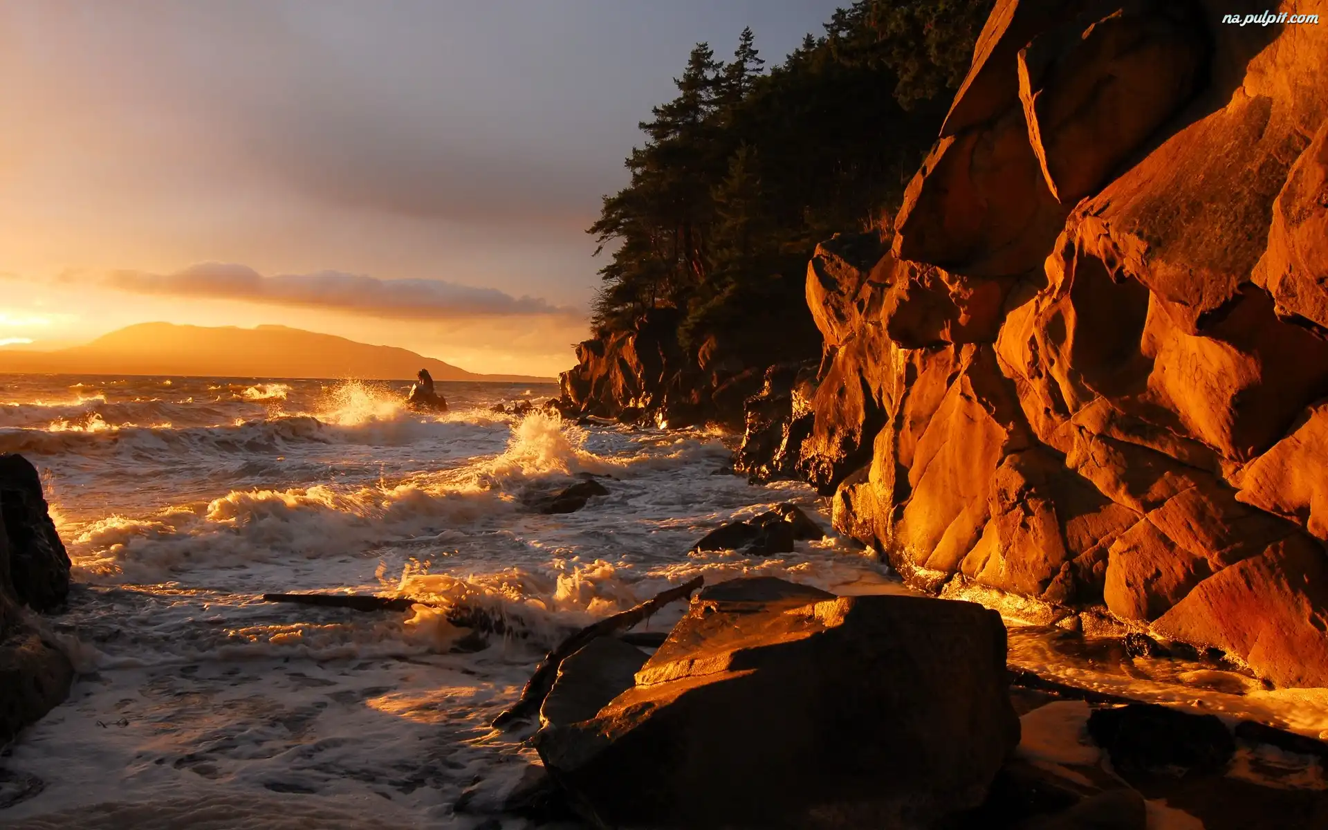 Zachód Słońca, Fale, Morze, Klif Na Pulpit
