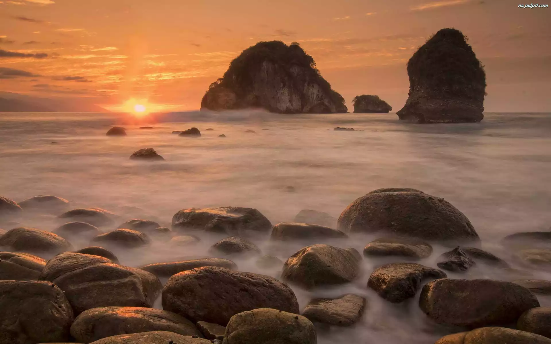 Zachód słońca, Kamienie, Morze, Skały Na Pulpit