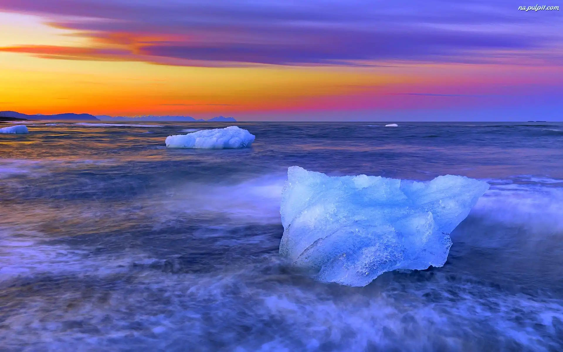 Zachód Słońca, Kry, Morze, Lodowe