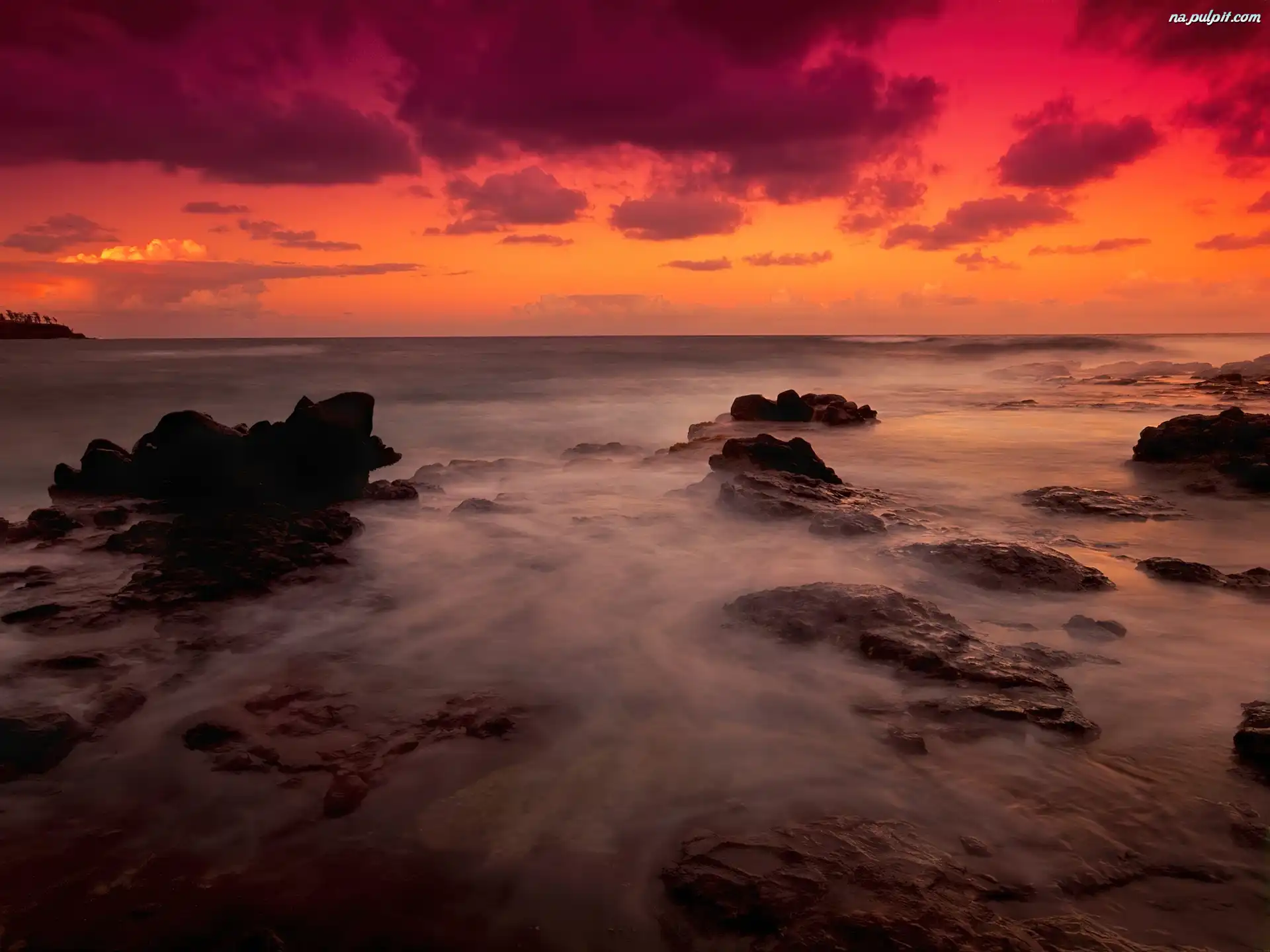 Zachód Słońca, Skały, Morze, Chmury Na Pulpit