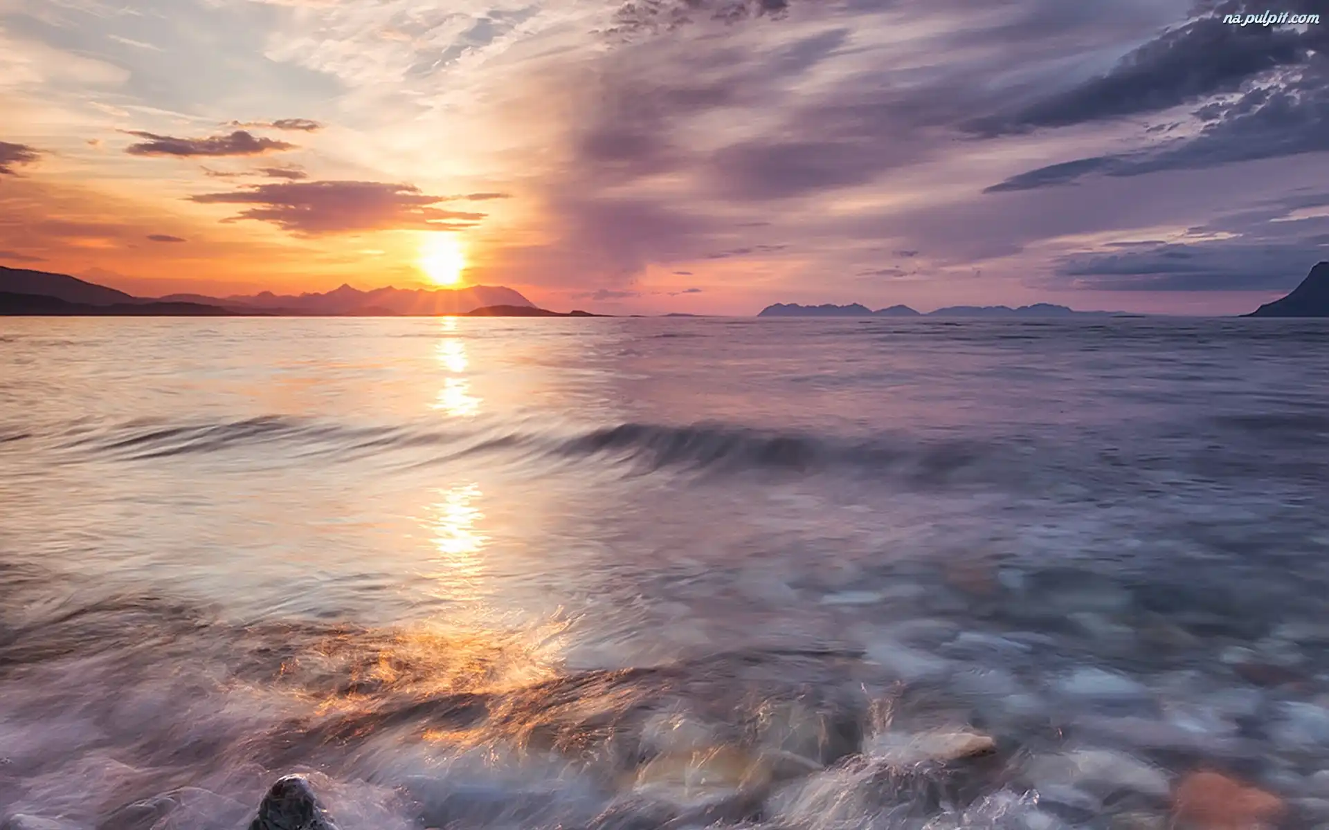 Morze, Zachód Słońca Na Pulpit