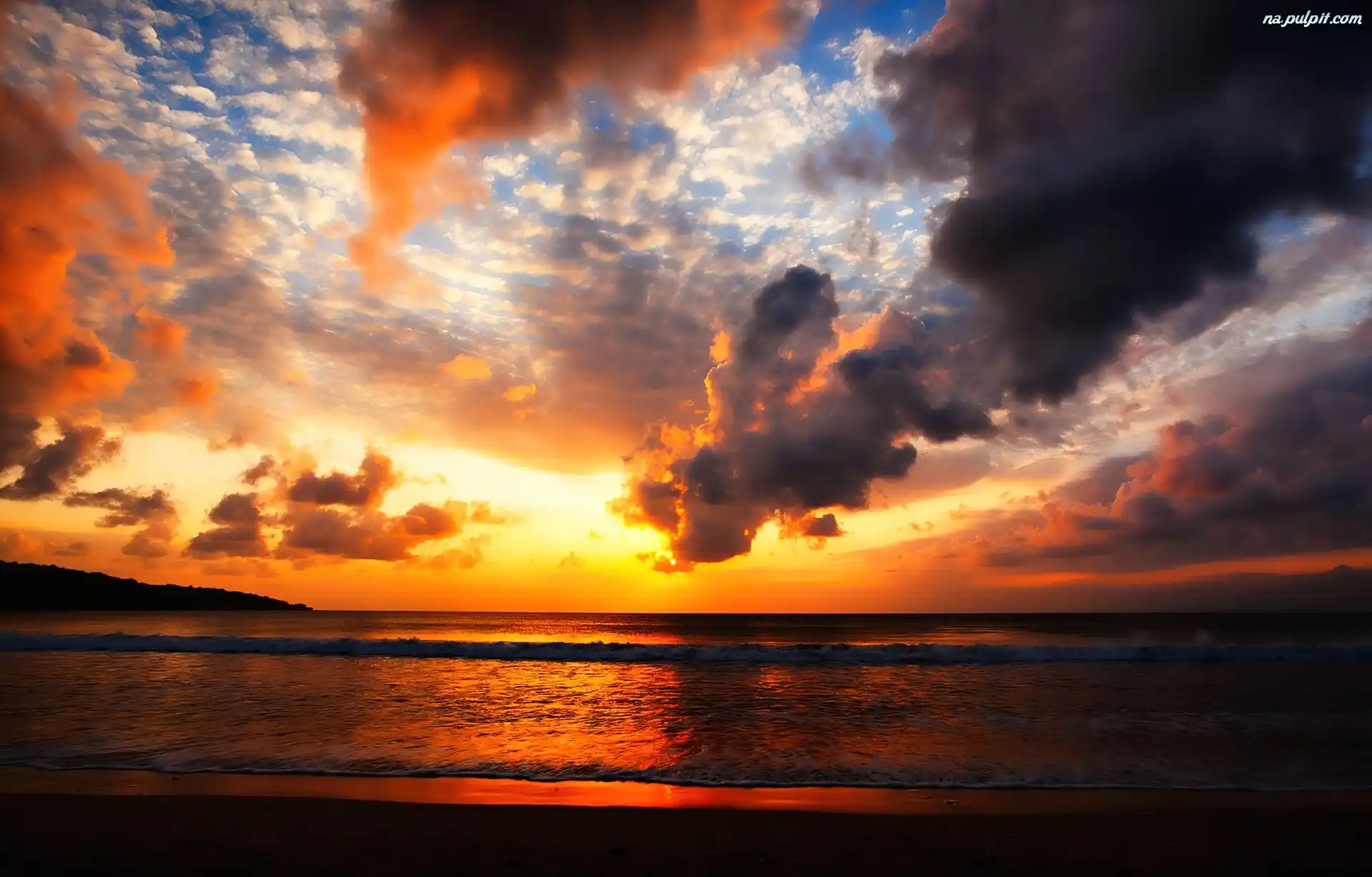 Zachód Słońca, Morze, Chmury Na Pulpit