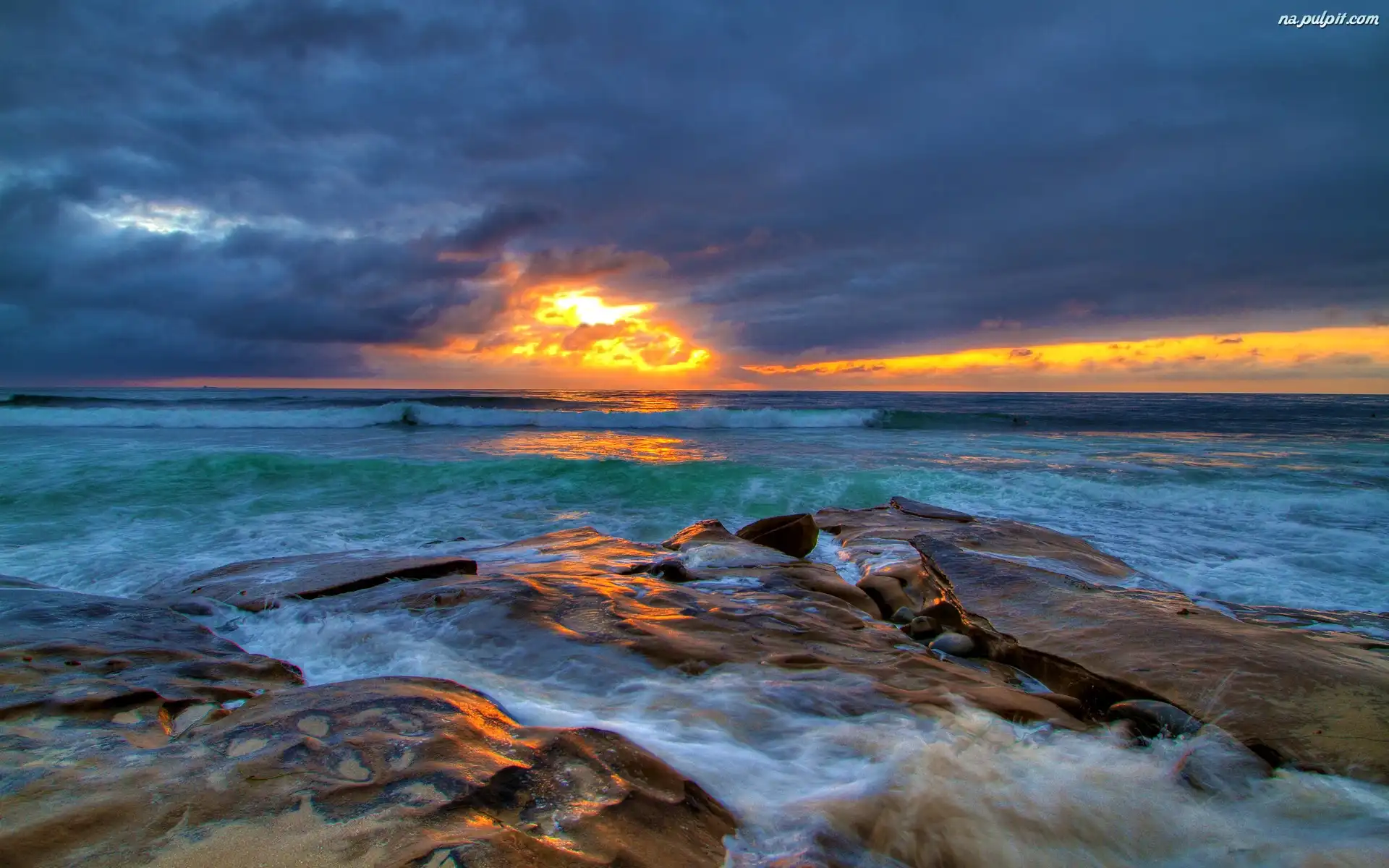 Zachód Słońca, Morze, Chmury Na Pulpit