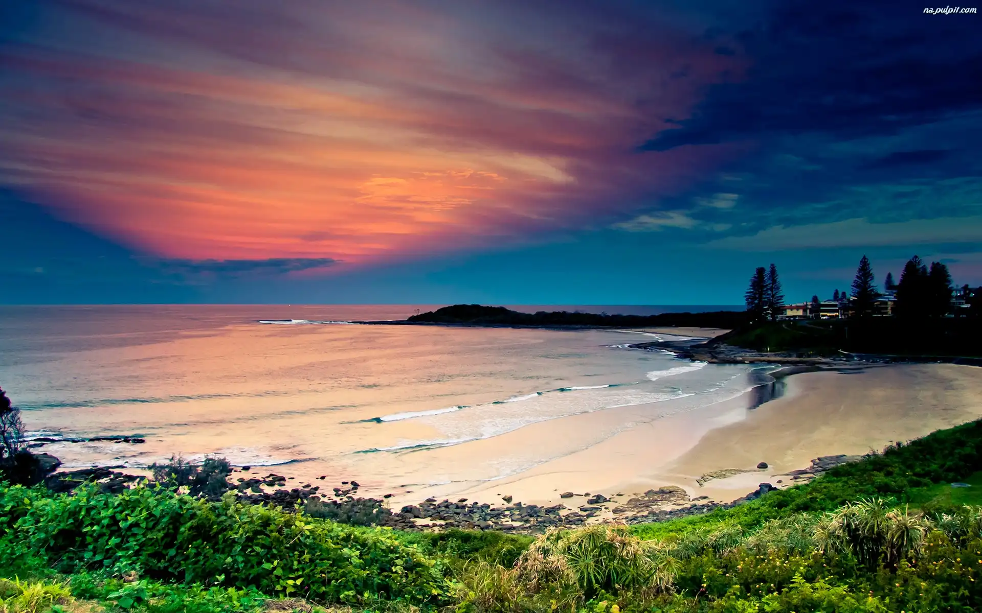 Zachód Słońca, Morze, Roślinność Na Pulpit