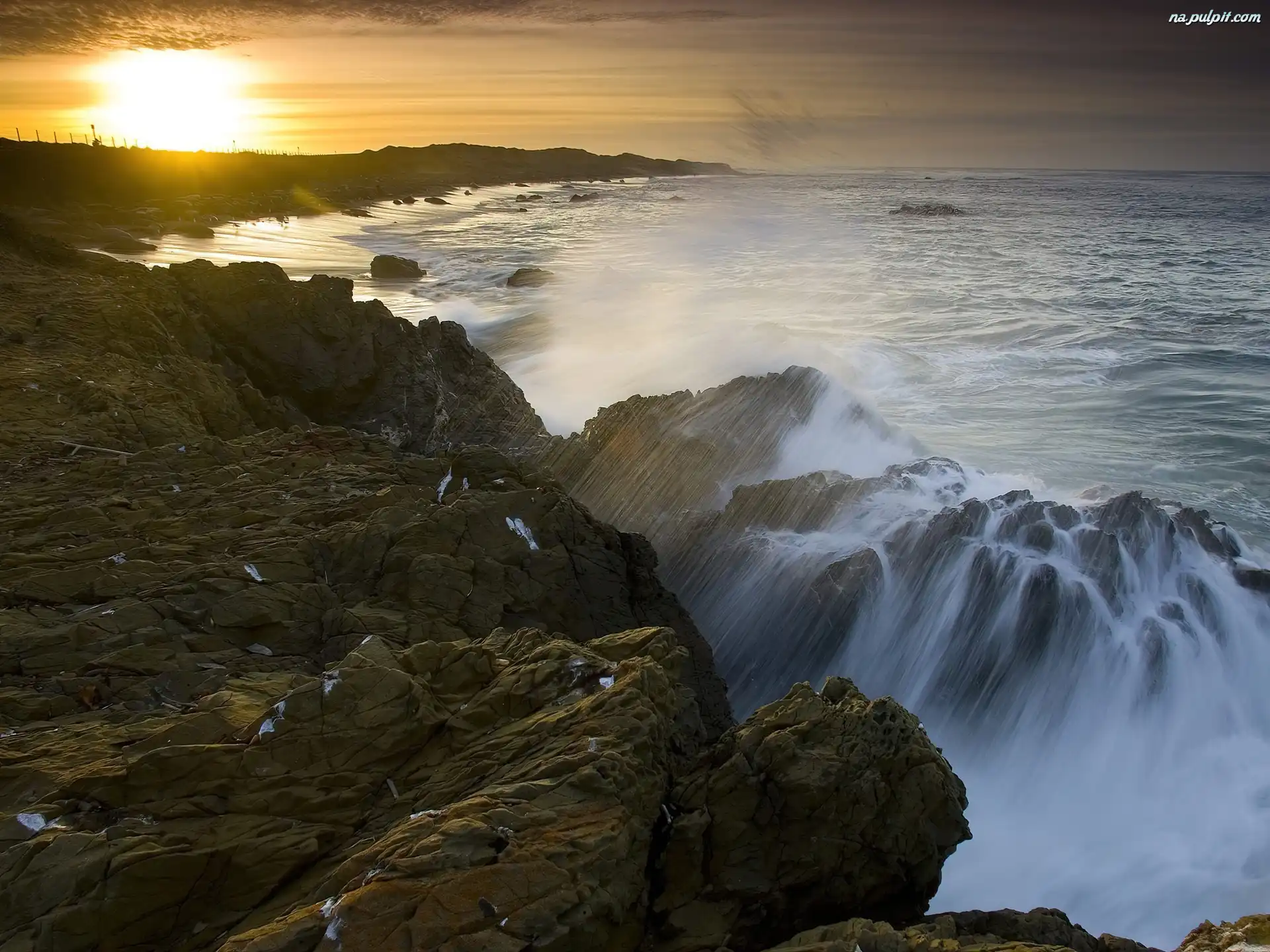 Zachód Słońca, Morze, Skały Na Pulpit