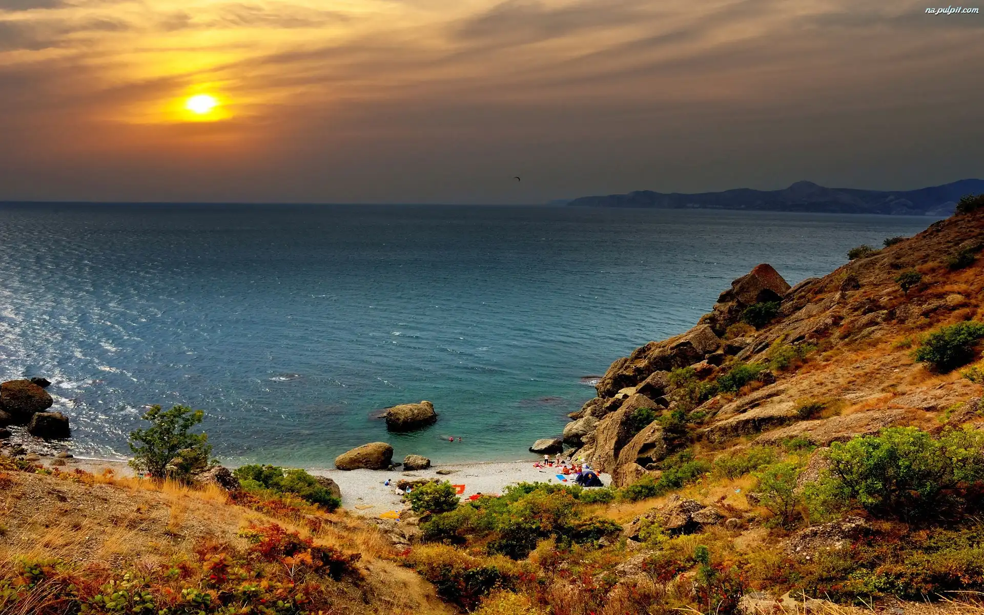 Zachód Słońca, Morze, Wybrzeże Na Pulpit