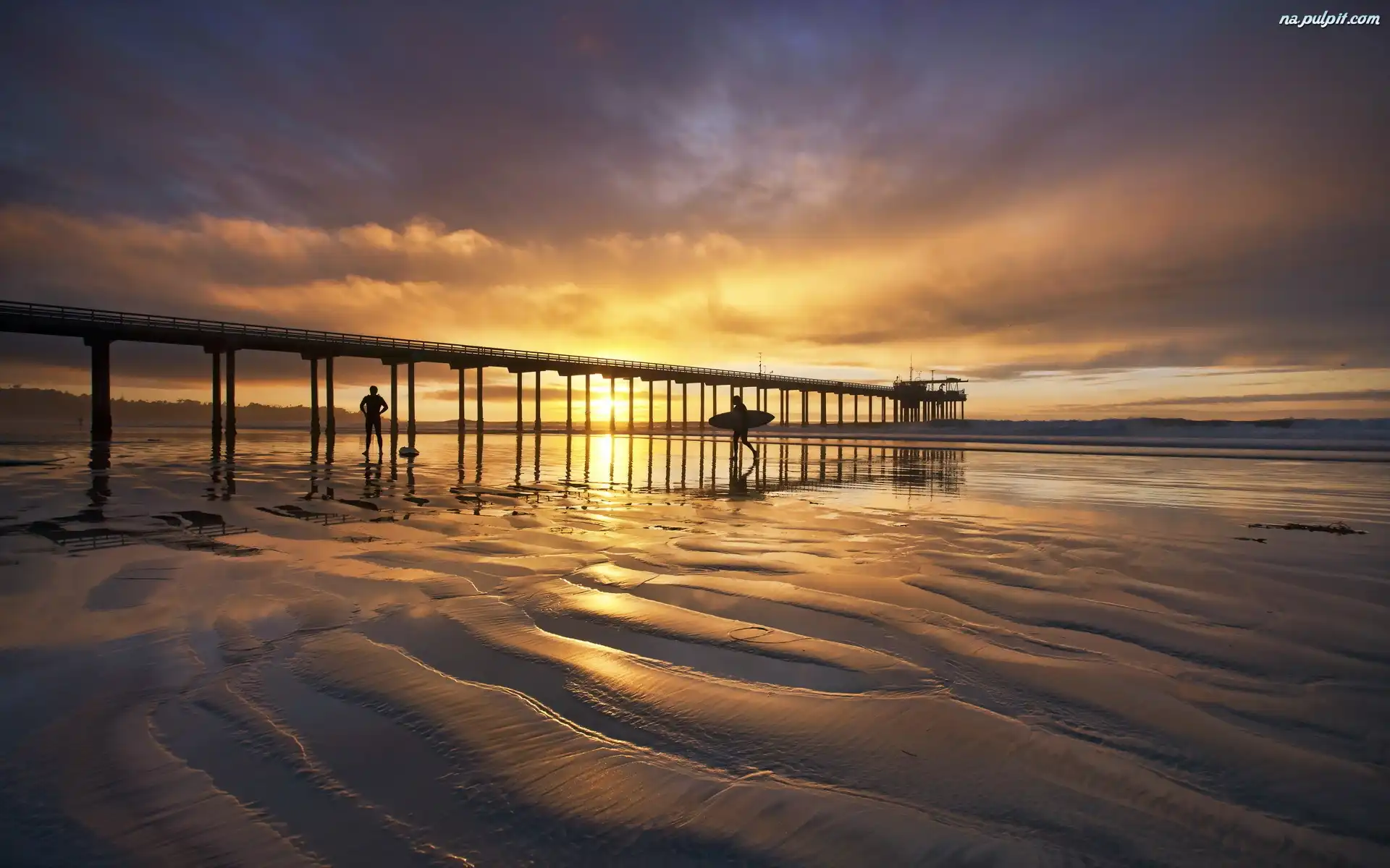 Zachód, Plaża, Wczasowicze, Słońca, Morze, Molo Na Pulpit