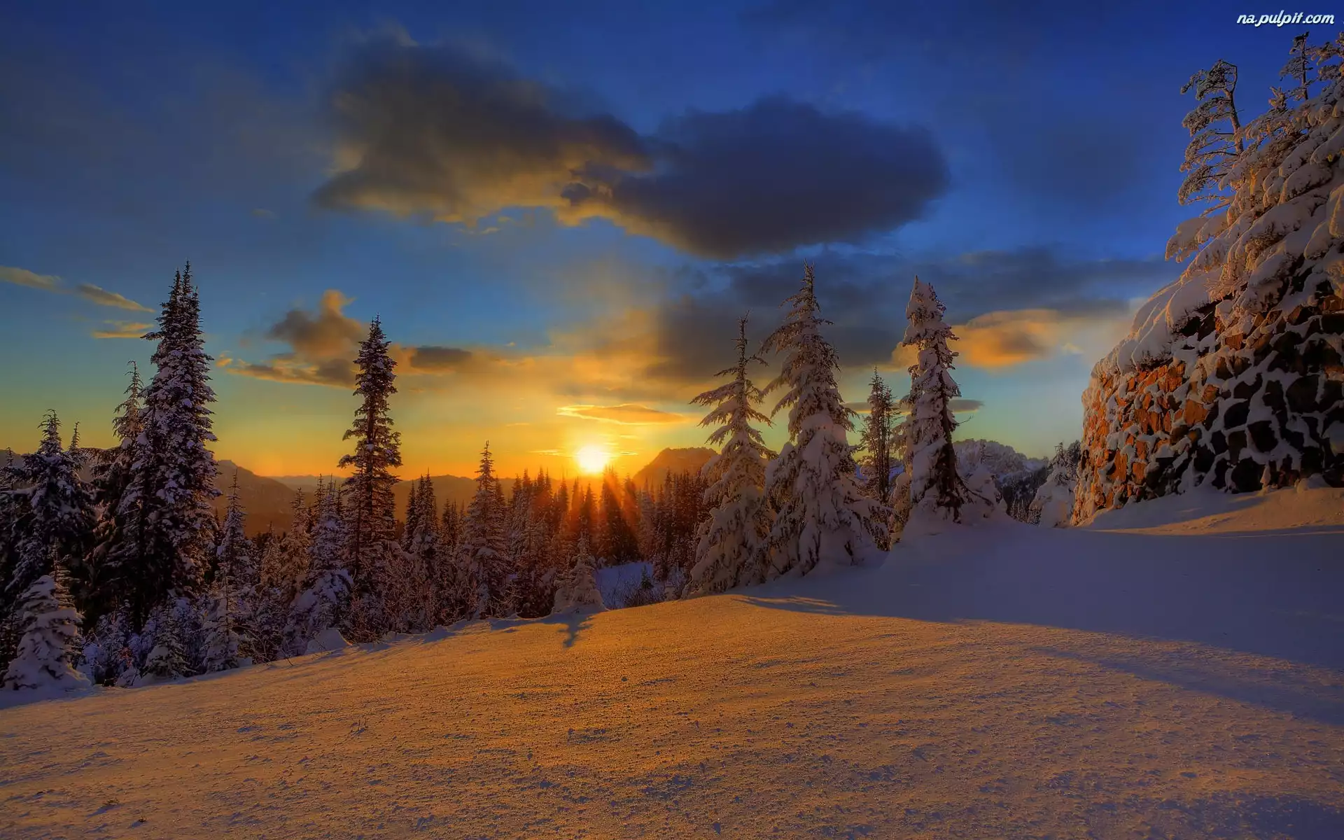 Świerki, Śnieg, Słońca, Zachód, Drzewa Na Pulpit