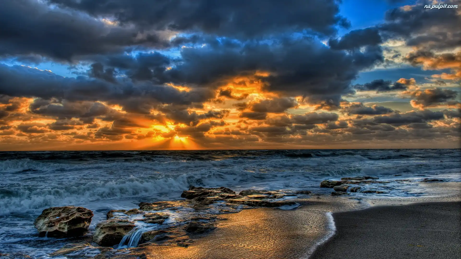 Zachód Słońca, Ocean, Chmury Na Pulpit