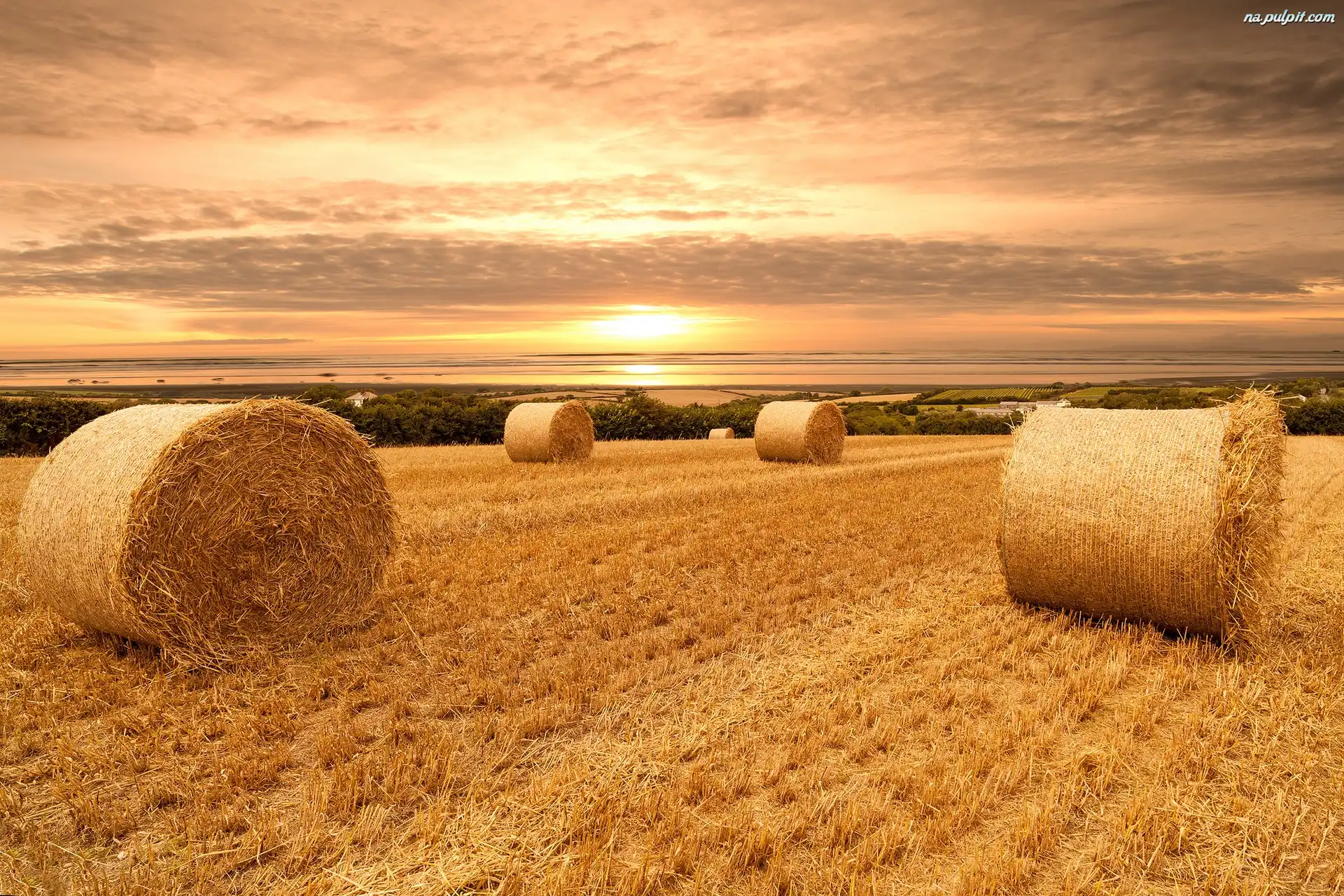 Żniwa, Pola, Słońca, Zachód, Słoma Na Pulpit