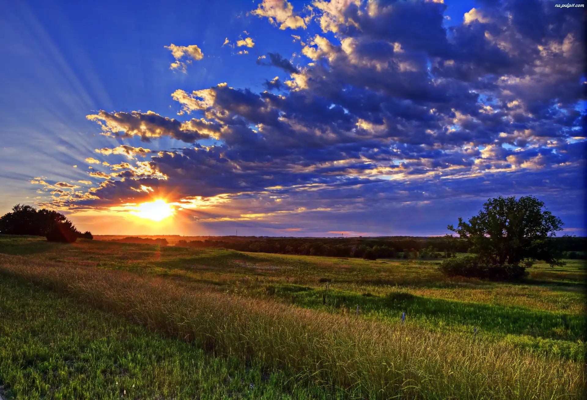 Zachód Słońca, Niebo, Pole, Chmury Na Pulpit