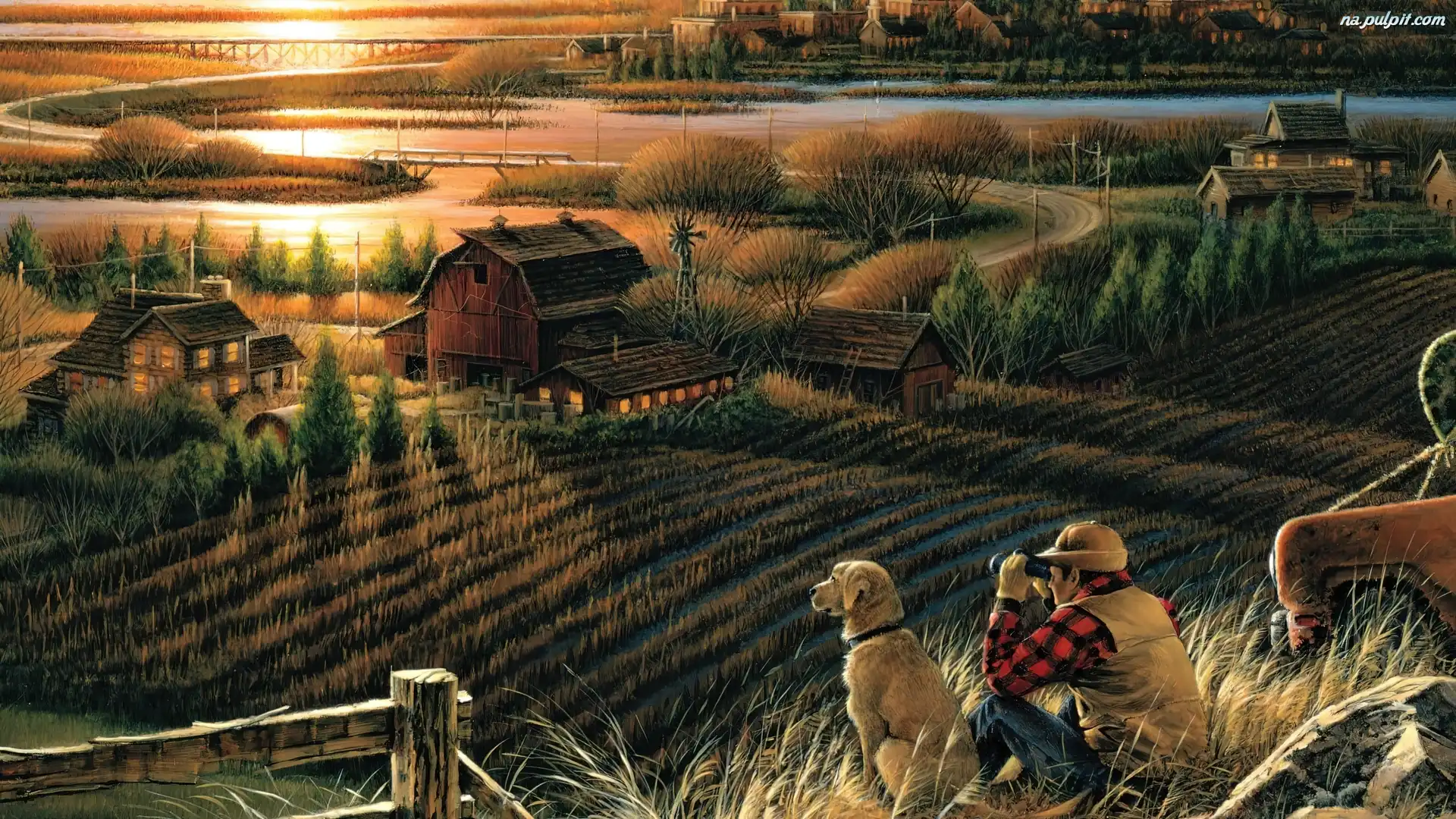 Reprodukcja, Zachód, Słońca, Terry Avon Redlin, Obraz, Pole Na Pulpit