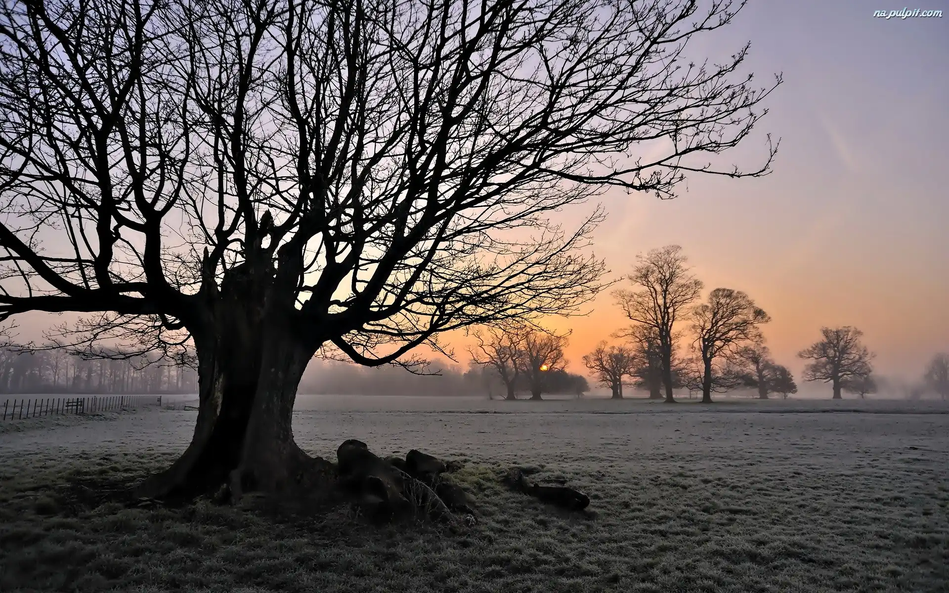 Zachód Słońca, Pole, Drzewa