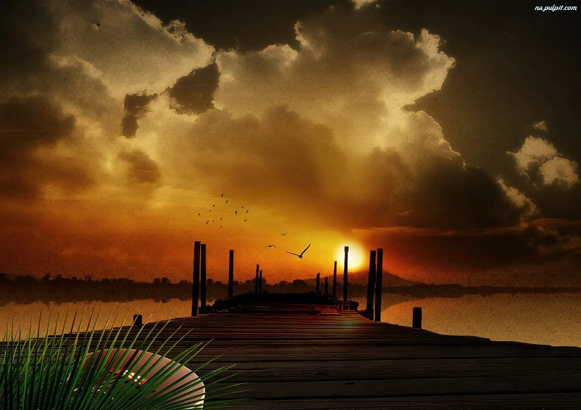Zachód Słońca, Pomost, Chmury Na Pulpit